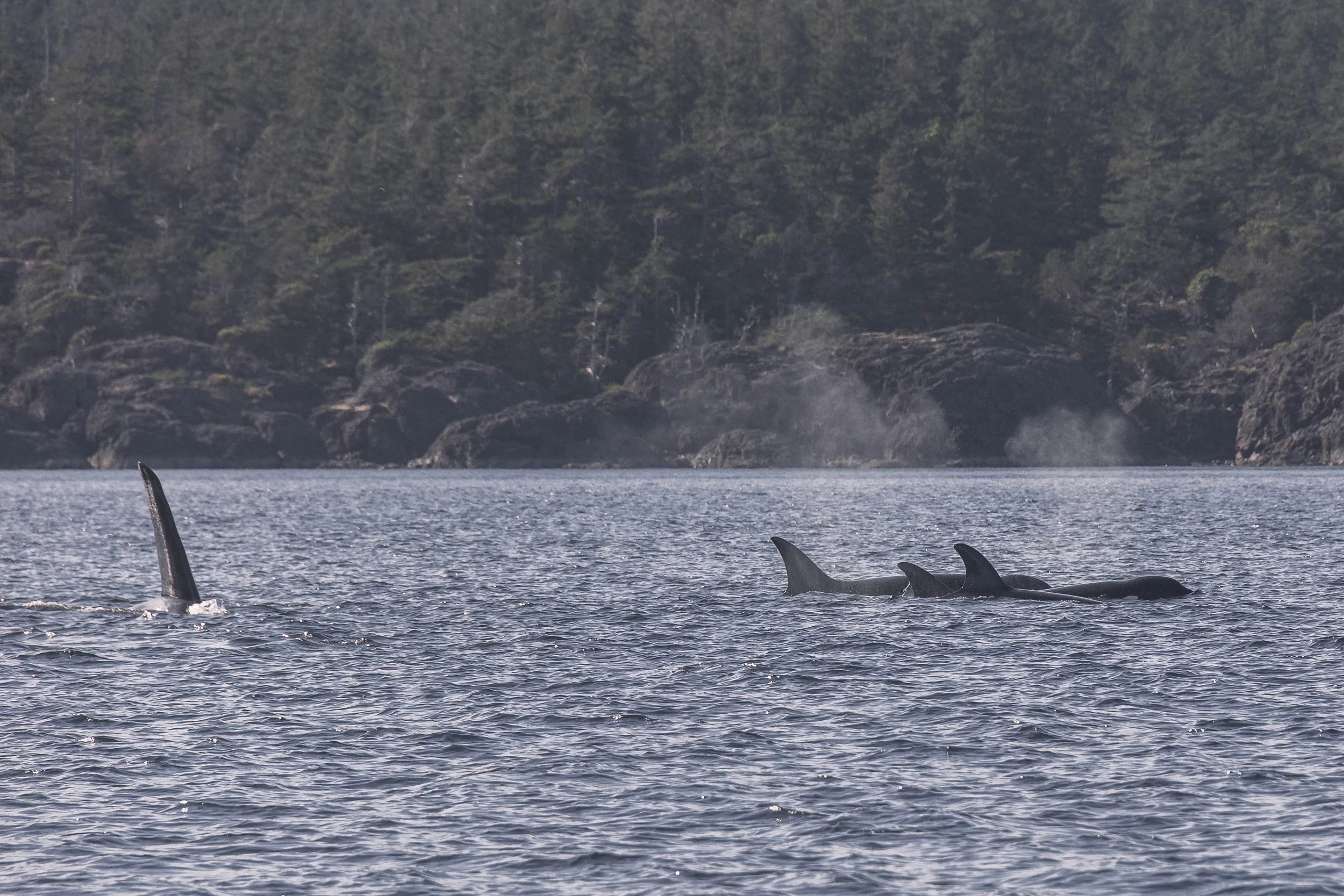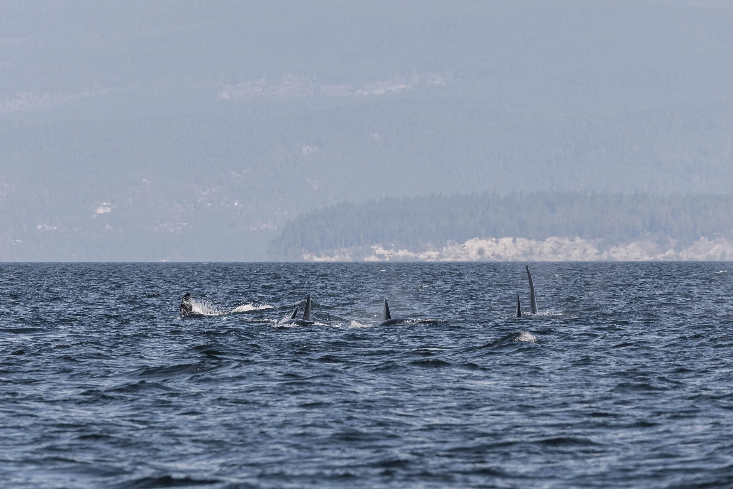 A little breach with the group of orca moving in unison. Photo by Desarae Poier.