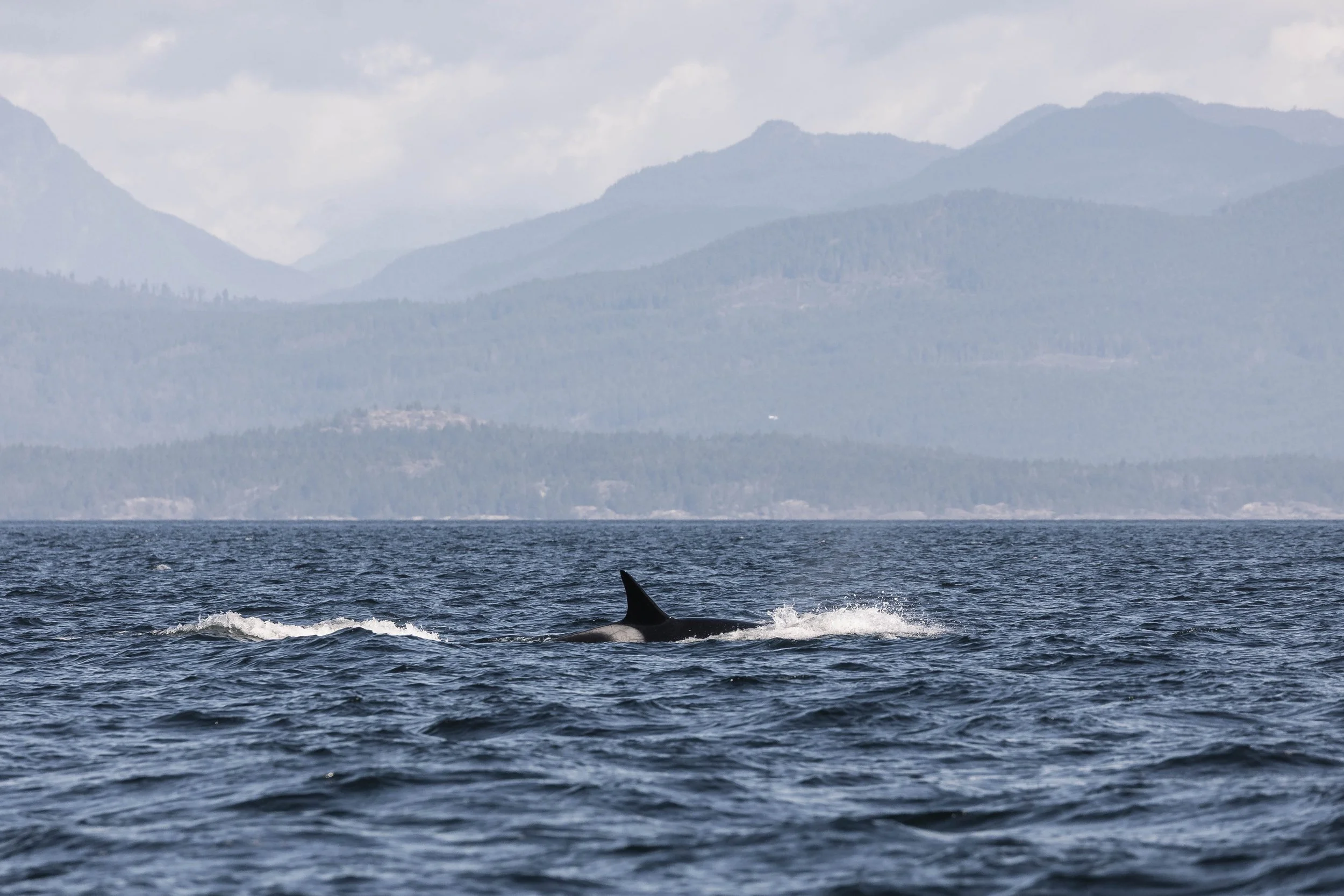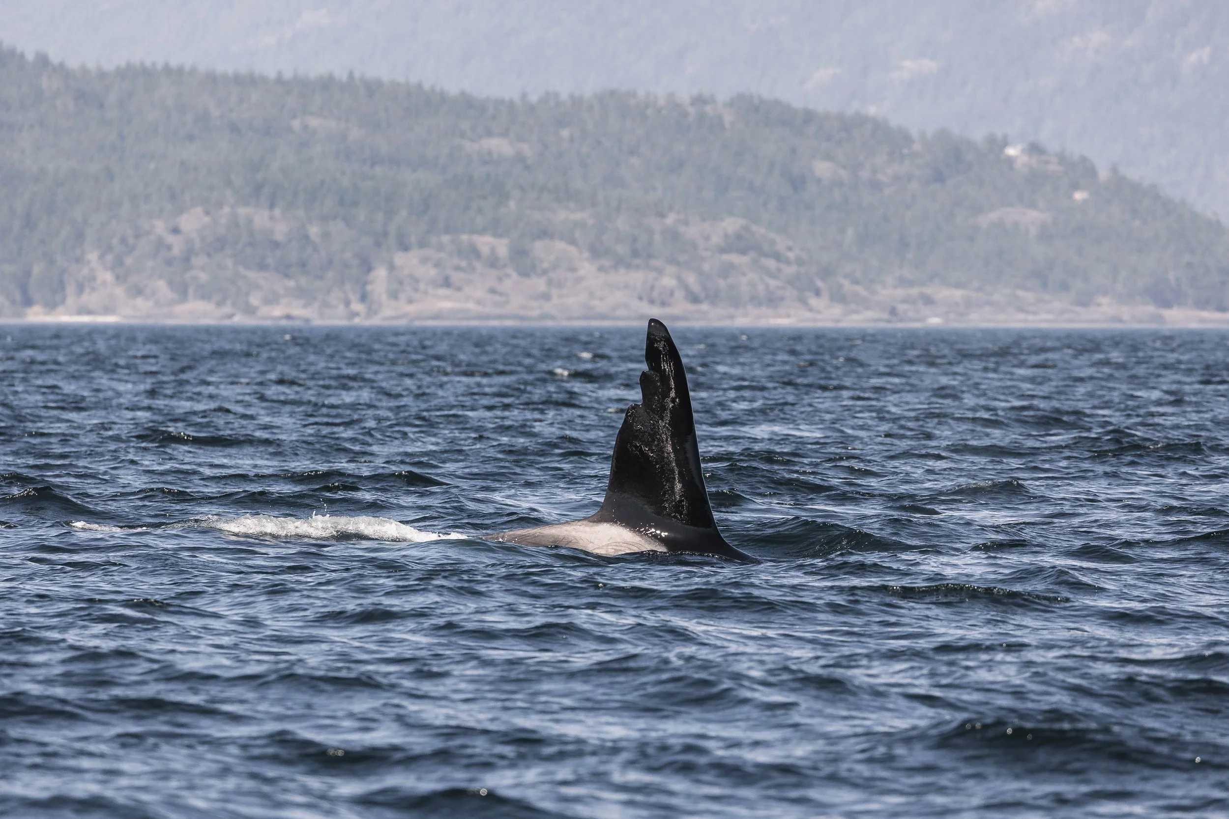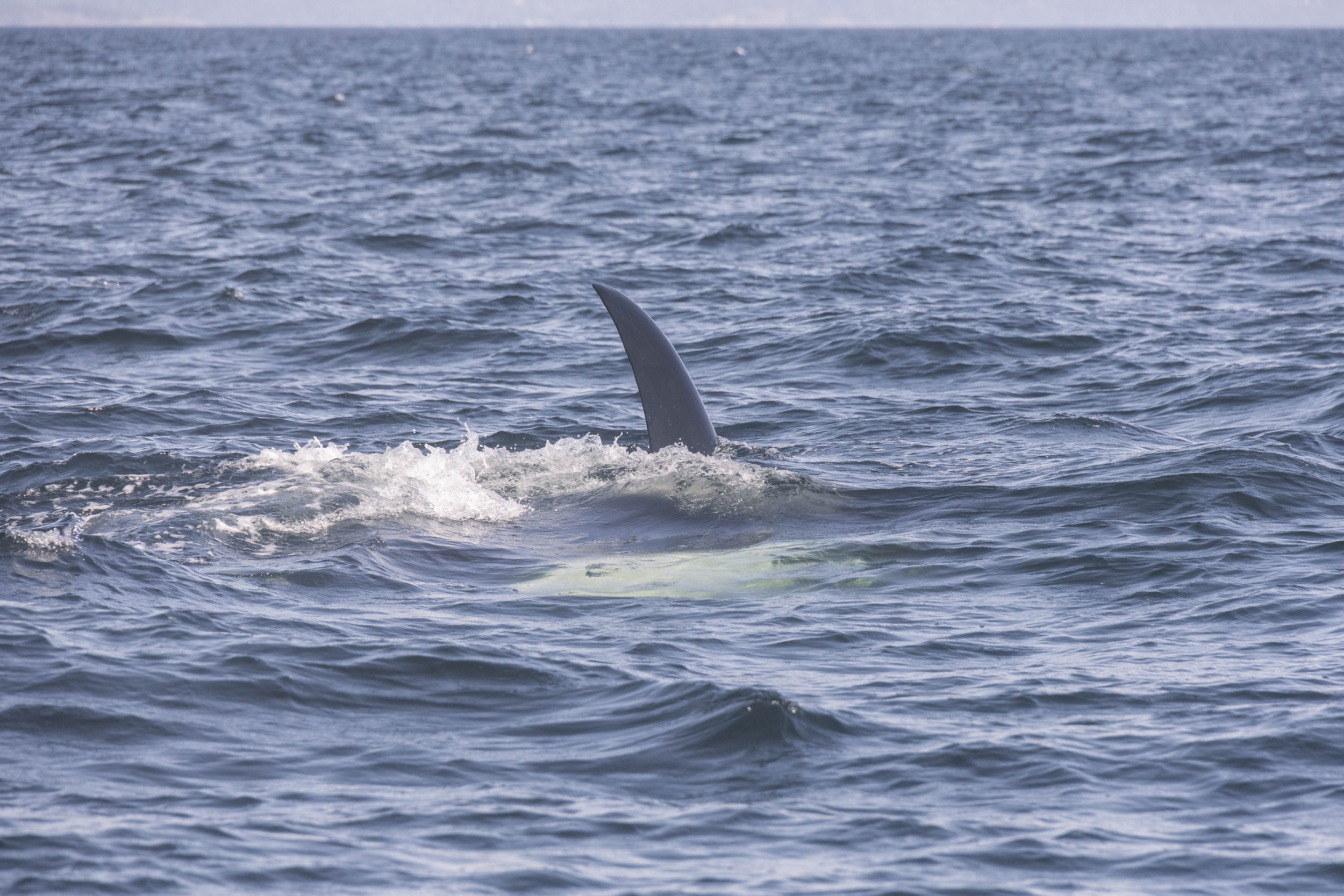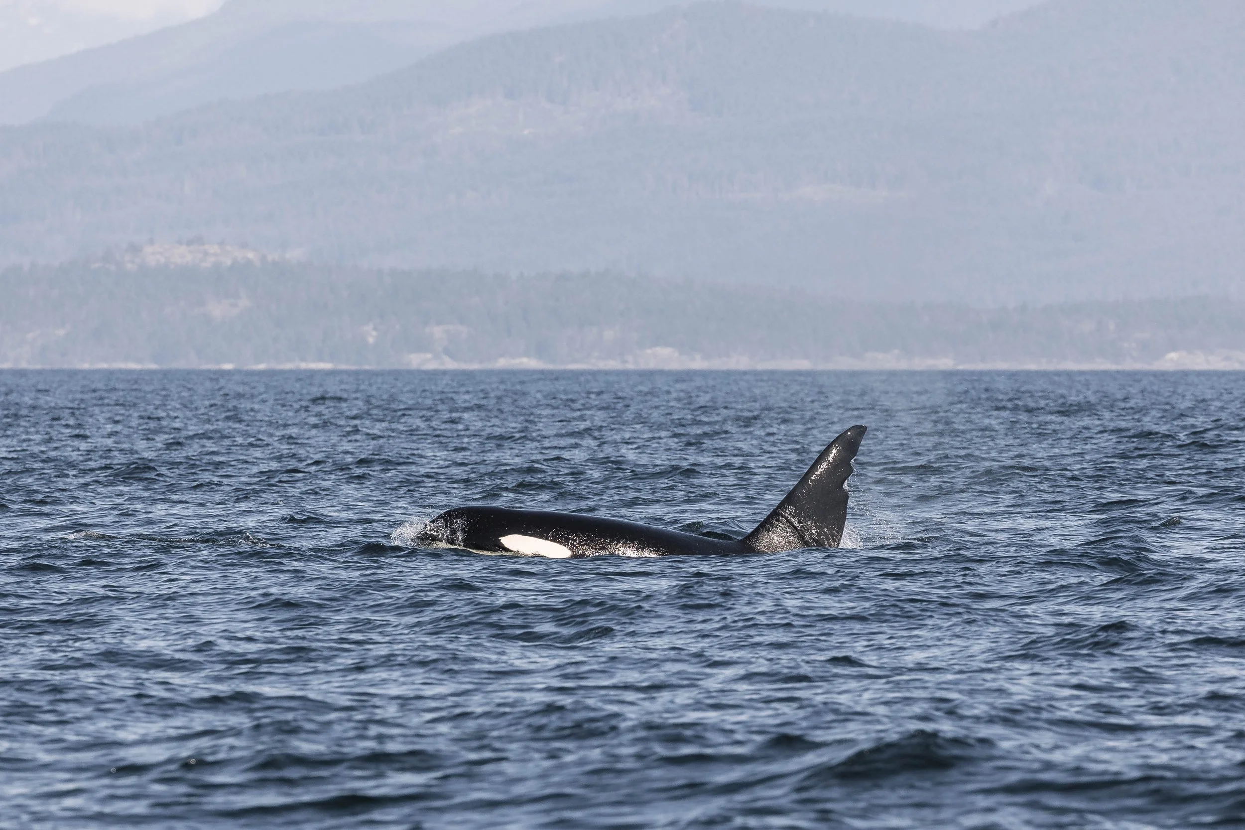 One of the orca flicking their tail at the surface. Photo by Hayleigh Hilbert.