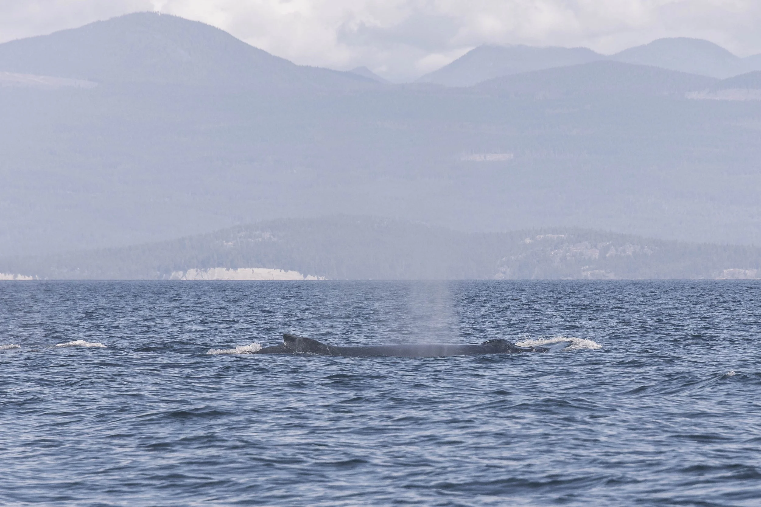 These types of interactions seem to be becoming more common in the area, likely as the humpback and transient orca populations both are on the rise. With more individuals around, the chances of running into each other are also increasing. These interactions can be initiated by either species, which sometimes surprises people, given that humpback whales are technically on the menu for orca. Although here in BC that's not realistically true. Even the calves are too large for a pod of orca to hunt easily, and the mothers will make every effort to prevent any harm coming to their calves. Sometimes, the orca will still give it a try along the migration route from the breeding grounds in Hawaii and Mexico to their feeding grounds here. When this happens, the humpback usually bears the scars from it for the rest of their life, scarring known as Rake Marks. Although none of the humbpacks present today have those scars, they may still have had negative interactions with orca in the past, which makes it so they don’t like them having fun around them anymore! The humpbacks we were able to identify in this group were Poptart (BCY1014), Arial (BCY0767), and Watson (BCY1461). There were also 4 pods of orca present: