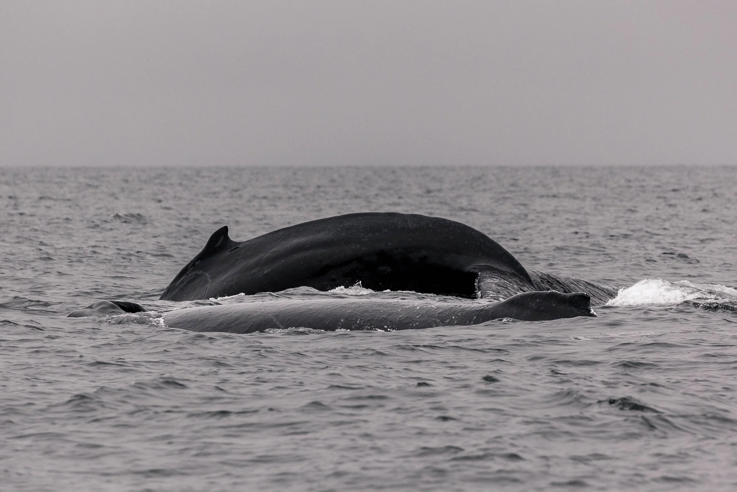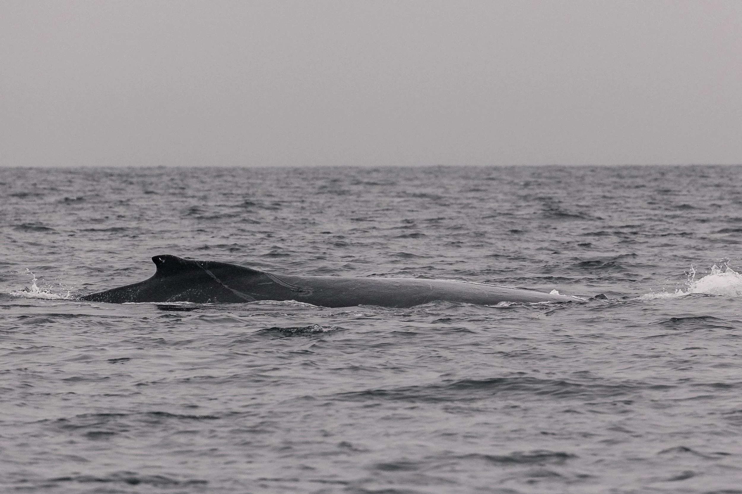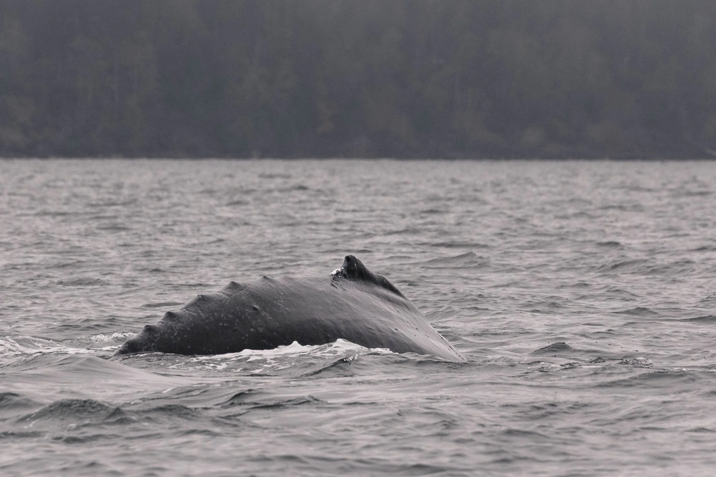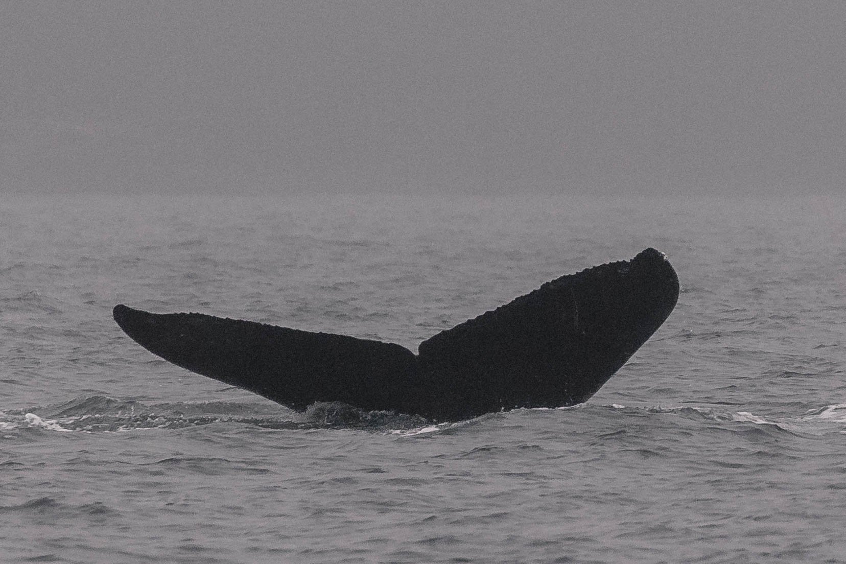 Once we were on scene, the next challenge began - identifying which whales we were with. Thankfully, all three of these whales were highly cooperative, and we soon captured photos of each of their flukes. The underside of a humpback’s flukes, or its tail, is a unique pattern of pigmentation, scars, scratches, lumps and bumps that is used as the primary identification method for this species. After taking these photos, we confirmed that the whales were Tempest (BCX0837), Graphite (BCX2077), and Kraken/Monarch/Pyramid (BCZ0180).