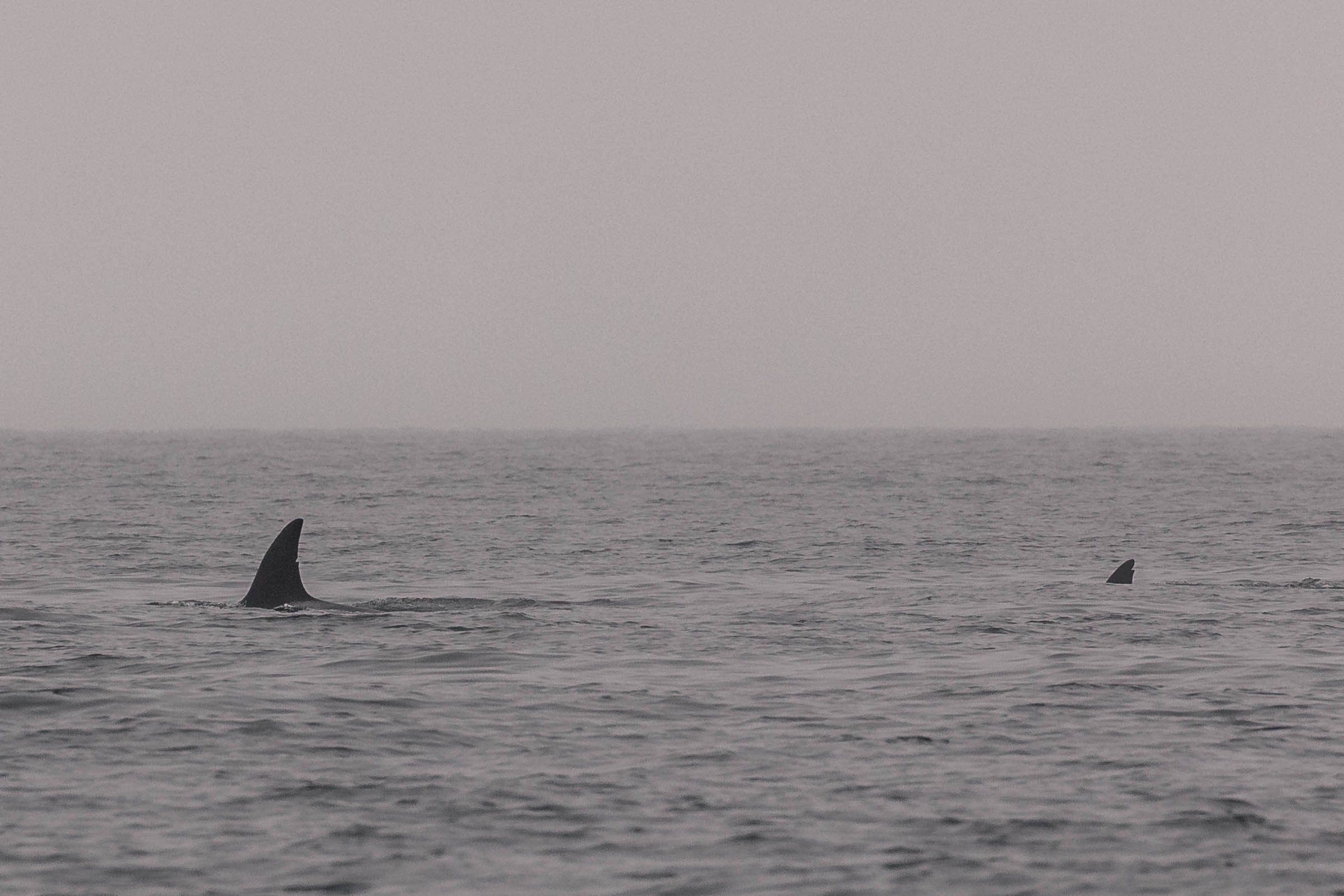 After travelling with the trio for a bit, we turned and began leaving, eager to see what else the day had in store for us. We didn’t have to search for long, though, as we soon found a trio of black fins cutting through the water 20 minutes away from our humpbacks. This time, we had found a pod of Transient orca! Once more, our onboard Naturalist began snapping photos to identify who they were with. Unlike with humpbacks, orcas are almost exclusively identified from their saddle patches and dorsal fins, and rarely are identified by their flukes. After comparing photos, we discovered we were with the T037A matriline, consisting of 3 currently present members: