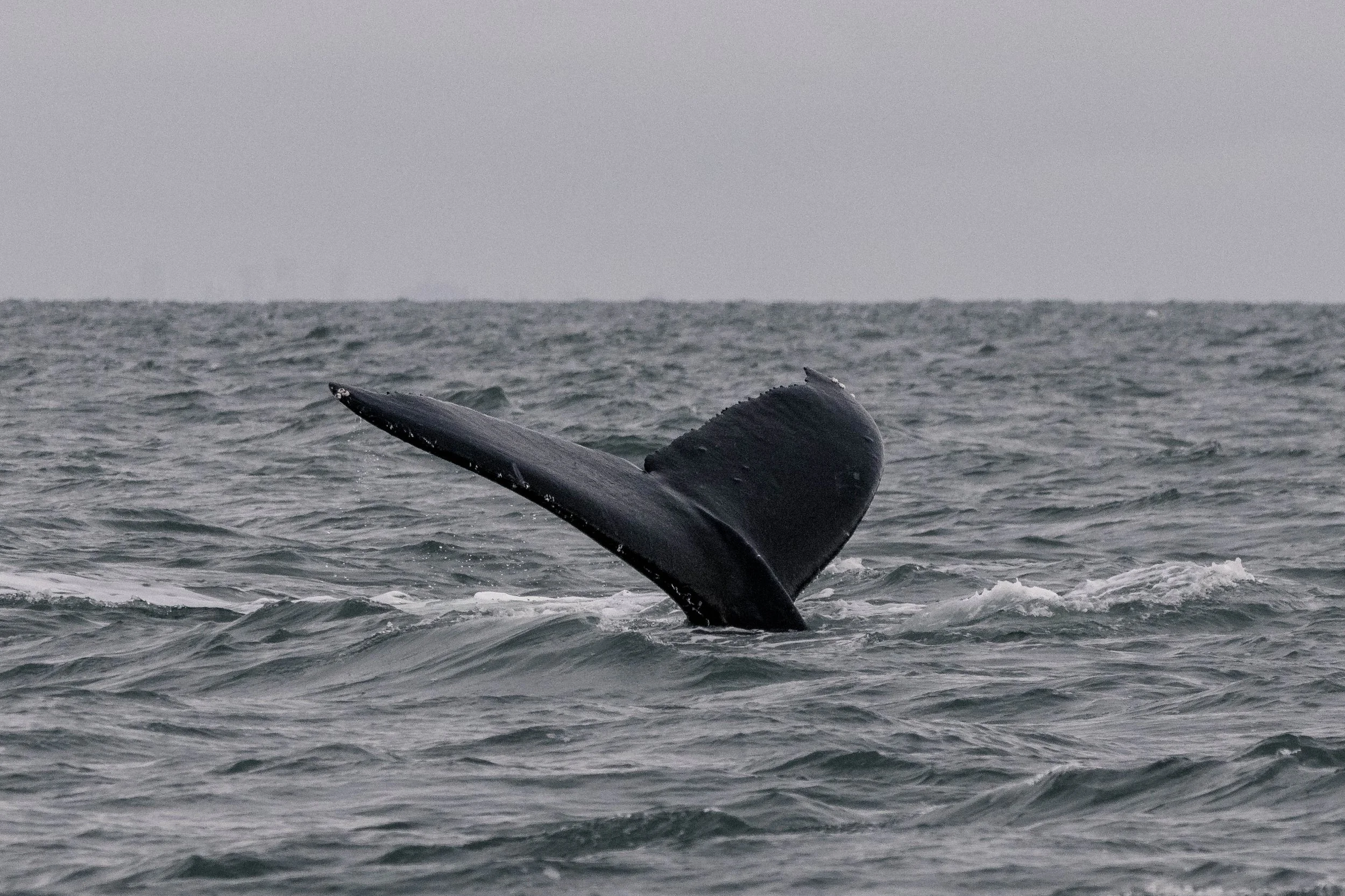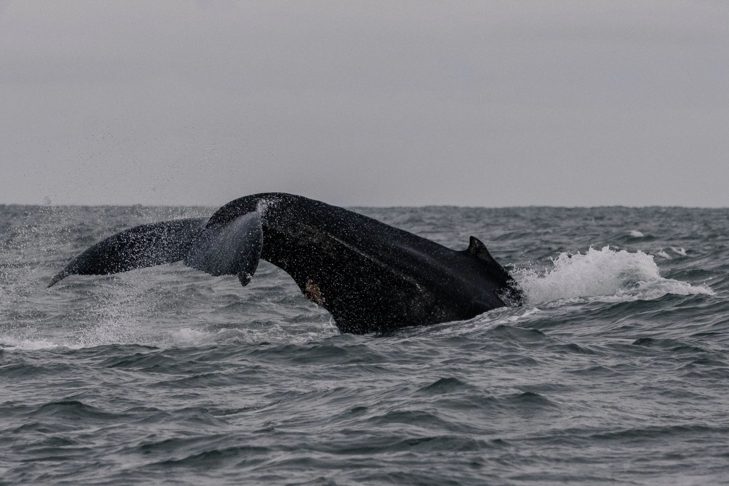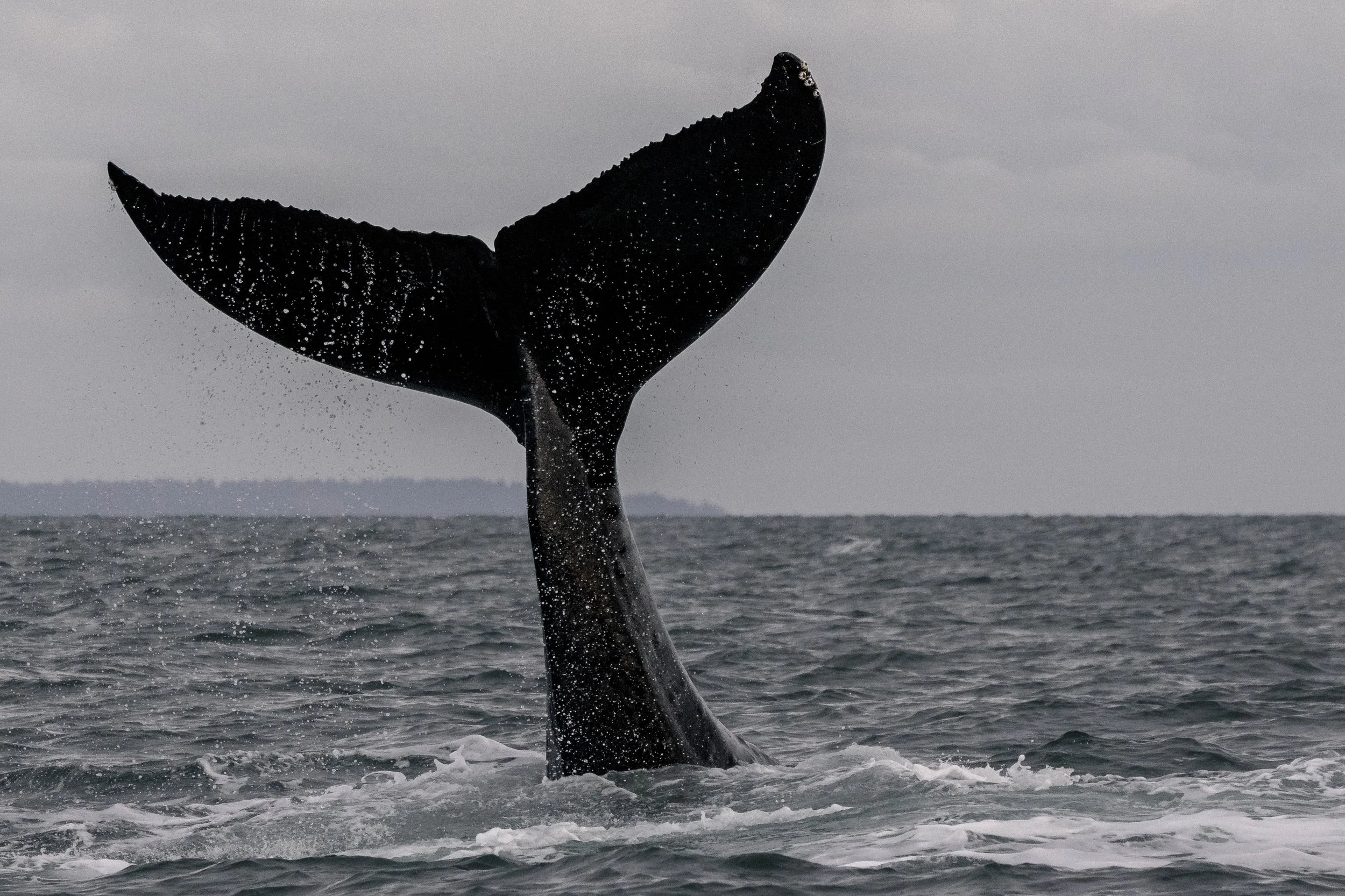 The two tail-shy whales were identified as Dandelion (BCY1107) and Scuba (BCY1225). The third individual present was much more cooperative, fluking high, creating many opportunities for a clear ID shot. This whale was identified as Graphite (BCX2077). While the trio was initially travelling together, they soon broke apart, and Scuba and Dandelion continued on their way, with Graphite staying by himself. After the trio split up, Kula continued travelling with Graphite. Soon after that, Graphite excitedly started splashing around, quickly diving and tail lobbing away. These acrobatics are always amazing, mainly because scientists aren’t entirely sure why they do them. Slapping away constantly at the surface consumes a lot of calories, which is the exact opposite of what our humpbacks want to be doing just before their migration starts. Right now, they should be gobbling up as much as they can, getting in their last few meals before they depart, as they will not regularly feed again until they return to our area next summer. So, why would Graphite decide to be slap-happy instead of focusing on conserving energy? The leading theories are that the quick slaps at the surface could help pull debris or parasites off the skin, relieving them of potentially itchy ‘hitchhikers’, or that it could be for communication to call other whales over, to either help group feed on a large school of fish/krill, or to warn other whales of potential dangers. Another reason Graphite could be slapping at the surface with his tail is to stun potential prey, leading to an easier time feeding - though that tends to be shorter slap-sessions than what was witnessed today!