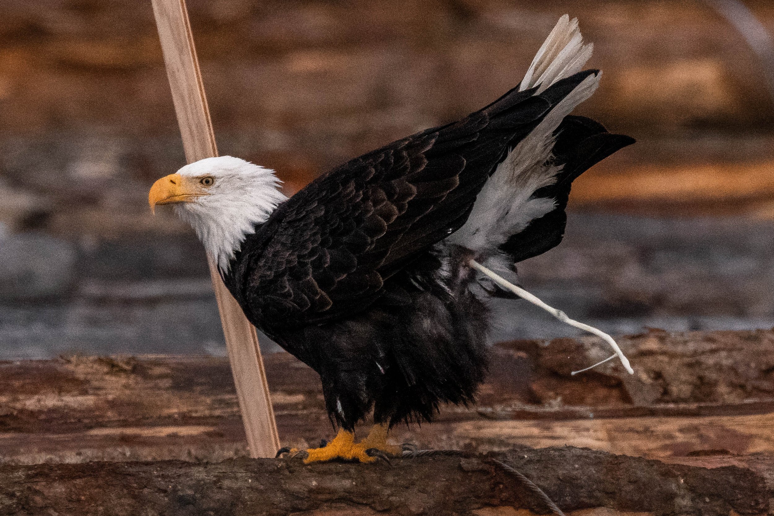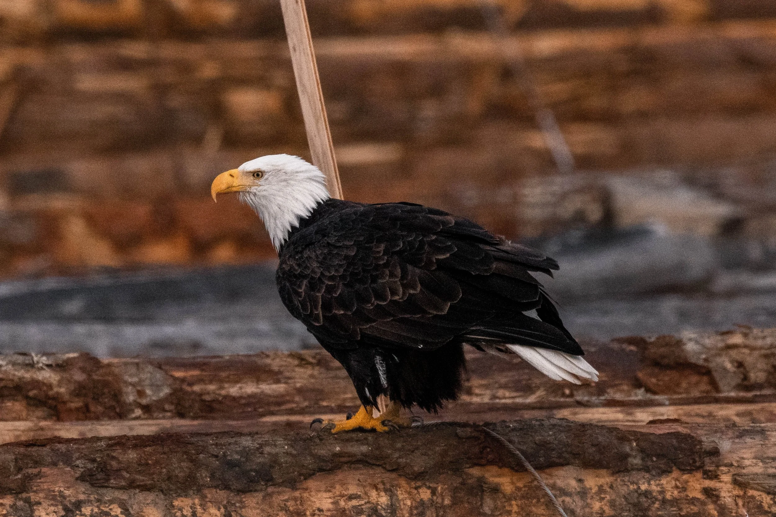 Soon, it was time to depart from our second group of humpbacks. We quickly headed back through the Southern Gulf Islands, aiming back north towards Nanaimo. Crossing back through Dodd Narrows once more, we began traversing Northumberland Channel. We headed over to some of the log booms situated at the edge of Gabriola Island for one last wildlife viewing - here, a large Bald Eagle was perched on the logs, peeking into the waters below. Our onboard Naturalist pulled out her camera, began snapping some majestic shots of this beautiful bird, until things took a bit of a ‘turn’ - the eagle turned around, and suddenly, projectile defecated, leading to quite the shot that can be seen below! While the whitish waste is often called ‘poop’, it technically is actually feces and urine at the same time! Birds have what is known as a cloaca, or a single opening from which they defecate and urinate. Because of this, they release both at once, leading to the liquid waste we are all too familiar with. If you want to sound fancy, you could also refer to this as a ‘whitewash’, due to its colour!