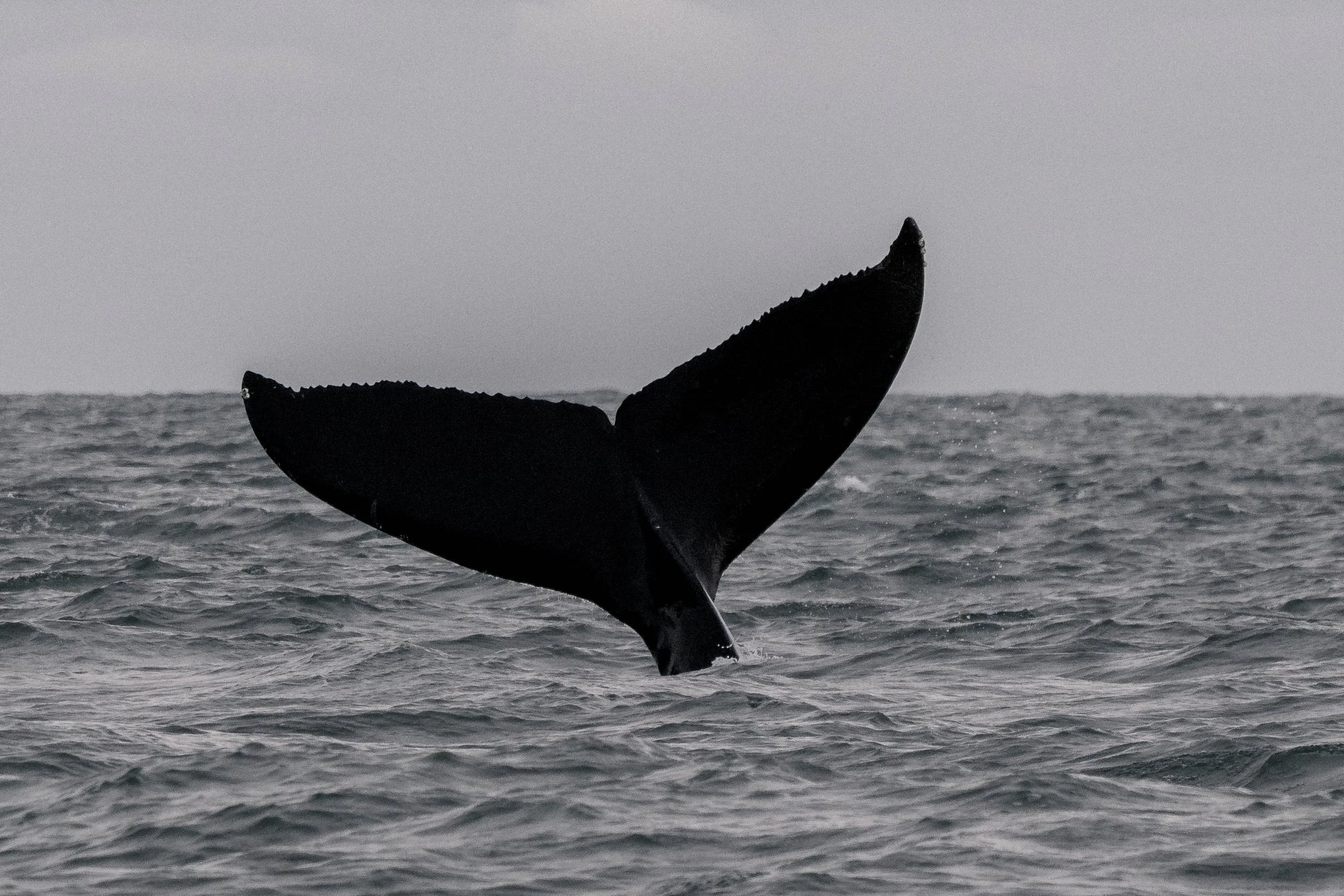 Graphite upside down, with the ventral (bottom) side of his fluke visible.