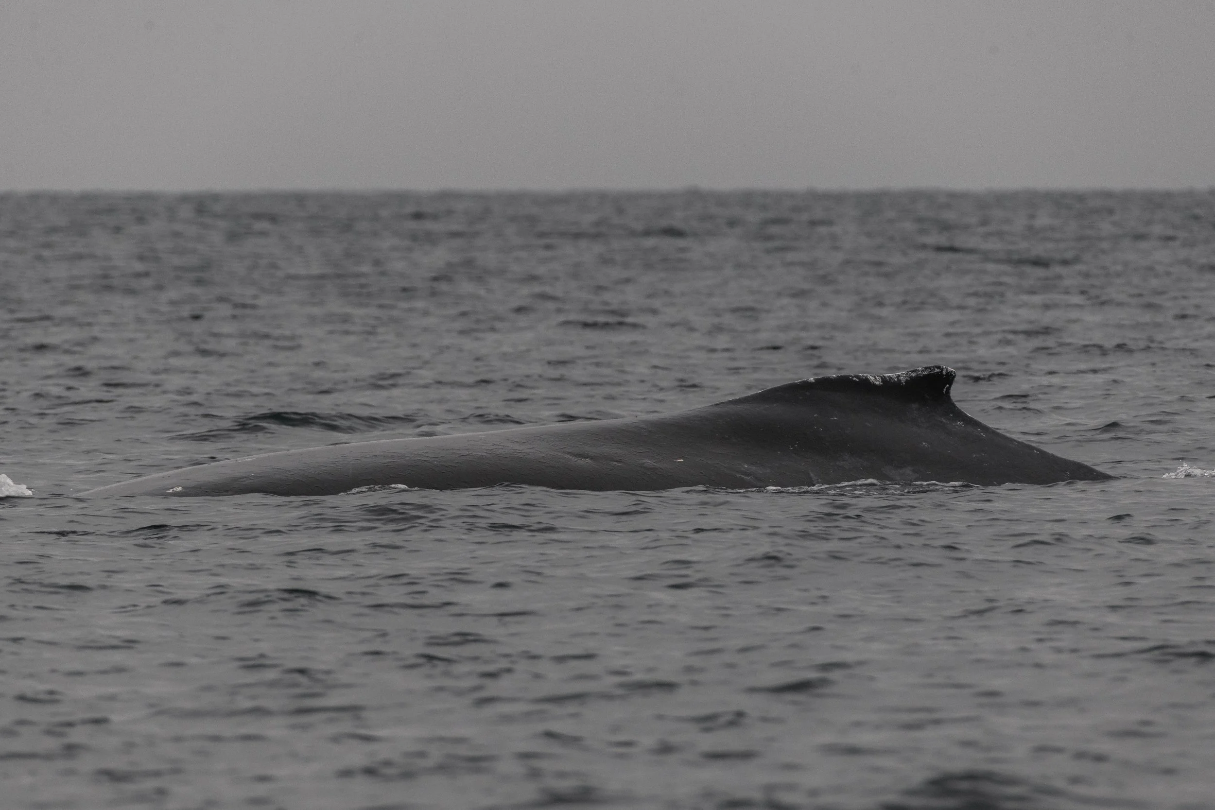 The next group of whales that we found was a loosely associating group of 3: Watson/Cerulean (BCY1461), Graphite (BCX2077), and Bullet (BCX1658). While on the water, Bullet had been mistaken for another whale in the area, Crater, thanks to a big dent in her dorsal fin, but a review in the office confirmed the correct ID! This can be one of the tricky things about whales: a lot of them look very familiar, so looking at the small screen of the camera on the water sometimes doesn’t provide the details needed. That’s why we always get extra eyes on the photos to confirm everything. This is especially important, as we share all our sightings with researchers at the end of the season, providing valuable data that helps protect these incredible animals!