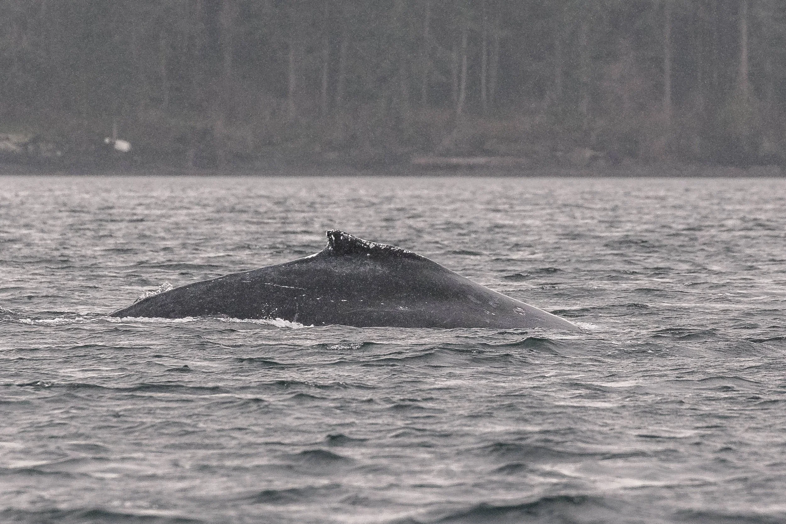 The day’s adventures weren’t over, though, as shortly after finding our first group of humpbacks, we found another group closer to shore! Fluking and diving, this pair was backlit beautifully as they travelled along. At the start of the encounter, there were two humpbacks travelling together side by side, however, one soon began diving deeper and disappeared. The second whale was identified as Sherwina (BCY0961), another regular to our area. Unfortunately, because of the deep dives we did shortly after we arrived, we weren’t able to get an ID shot for her friend, so their identity remained a mystery!