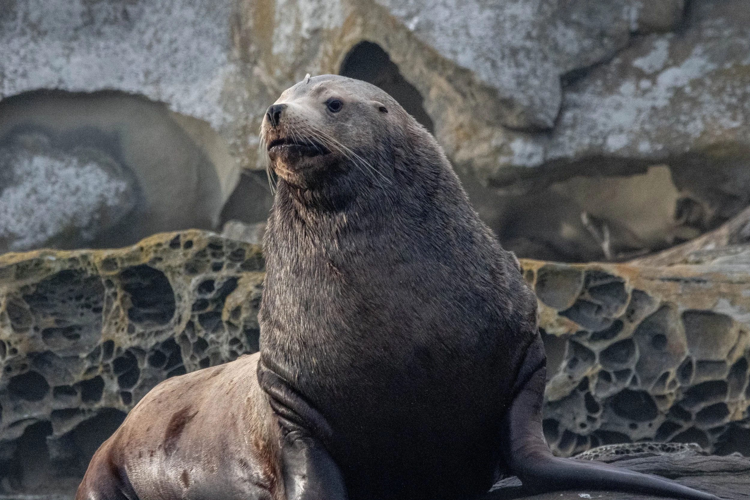 Once our time with the boys was up we left and began crossing back towards home port. On our way back we took another pitstop at Entrance Island, a small rocky island where many of our different wildlife species like to rest. Today we spotted a large male Steller sea lion with a bad case of “bed head” grumbling away on the shores - you can take a peek at his photo below! There was also a large juvenile Bald Eagle watching from the top of the rocky hill, likely keeping an eye on the water in case an easy snack popped up.