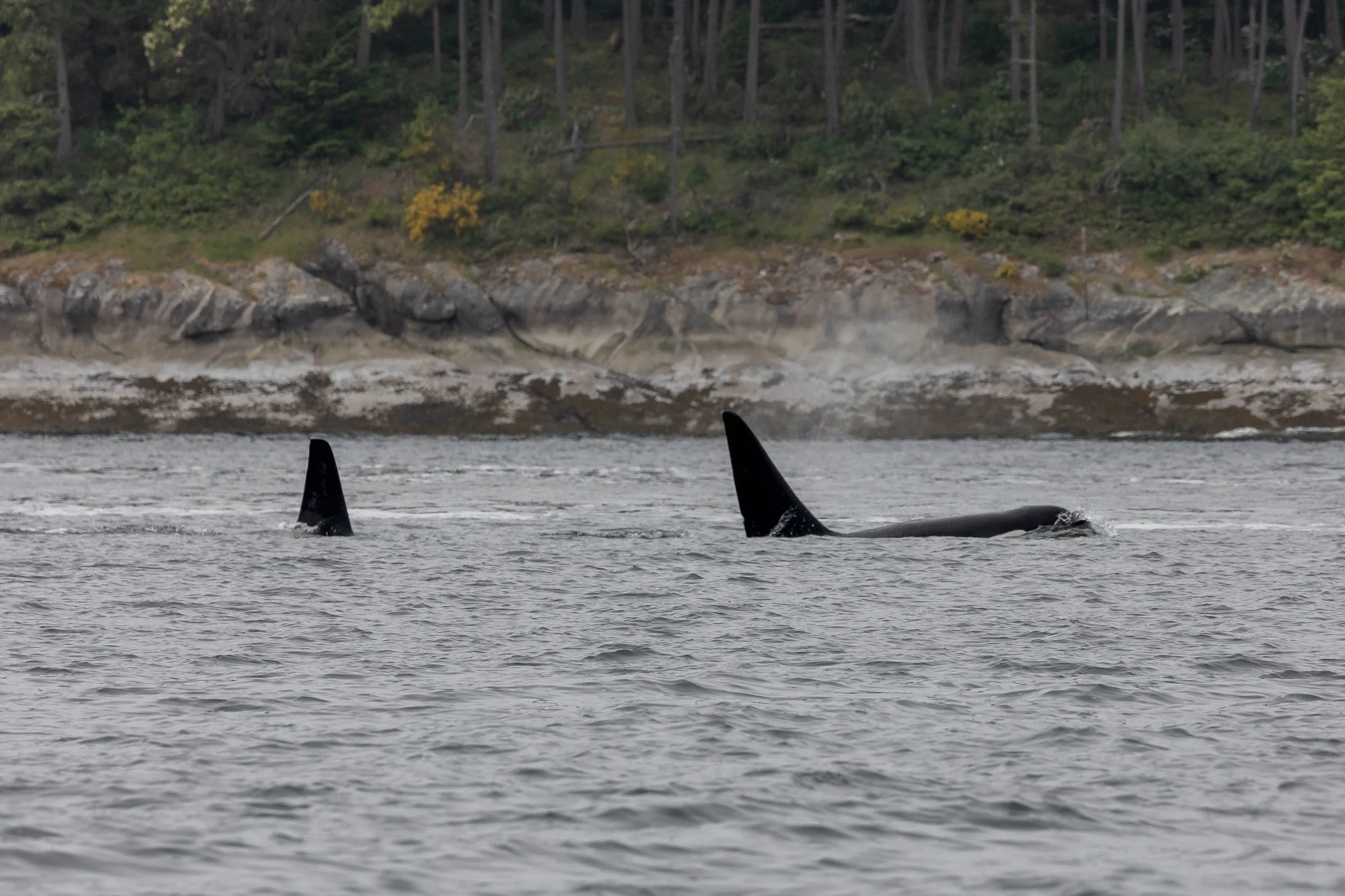 Jude, for example, known to travel separately from his T049A matriline, was found back in October 2023 trapped in Barnes Lake on Prince of Wales Island in Alaska… for six weeks! Fortunately for him (and for us!), he escaped that risky ordeal and continued his gallant expeditions, which seem to have led him here today. And today, he looks as good as ever—travelling and surfacing slowly, giving us plenty of time to snap some great pictures for the scrapbooks!