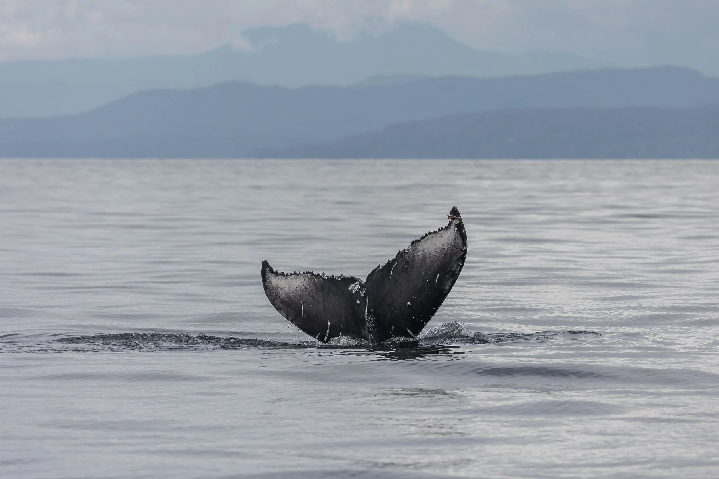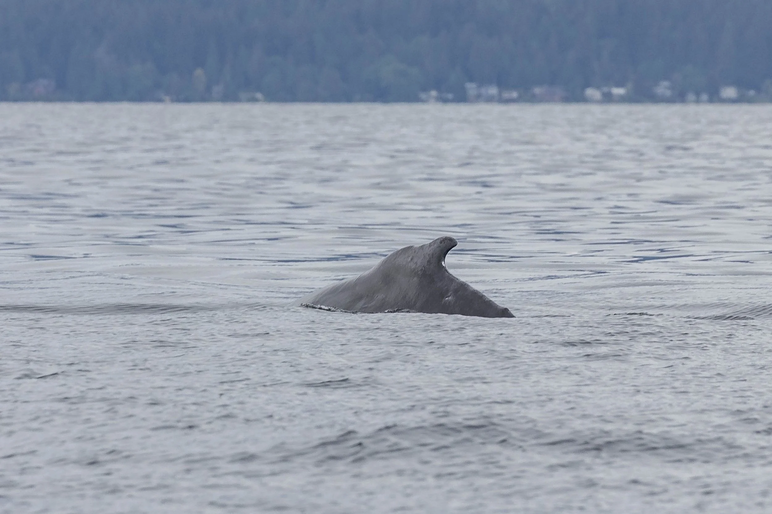 We enjoyed our time with this little mystery whale as they were feeding, blowing bubbles to likely confuse and capture their prey. The food must have been relatively close to the surface as well, as they weren’t gone for long after going for the typical deeper feeding dives. When the humpback first arrives in our waters, feeding is their main goal, since they have not only migrated nearly 6,000 km, but during their migration, the vast majority of their energy would have come from burning their fat reserves instead of from their current food. This yearly yo-yo diet happens for each humpback we see, as it’s never been proven that any humpback spends their winter here. Down south, where they go to breed and have their calves, there isn’t as much available food, so they will only feed opportunistically.