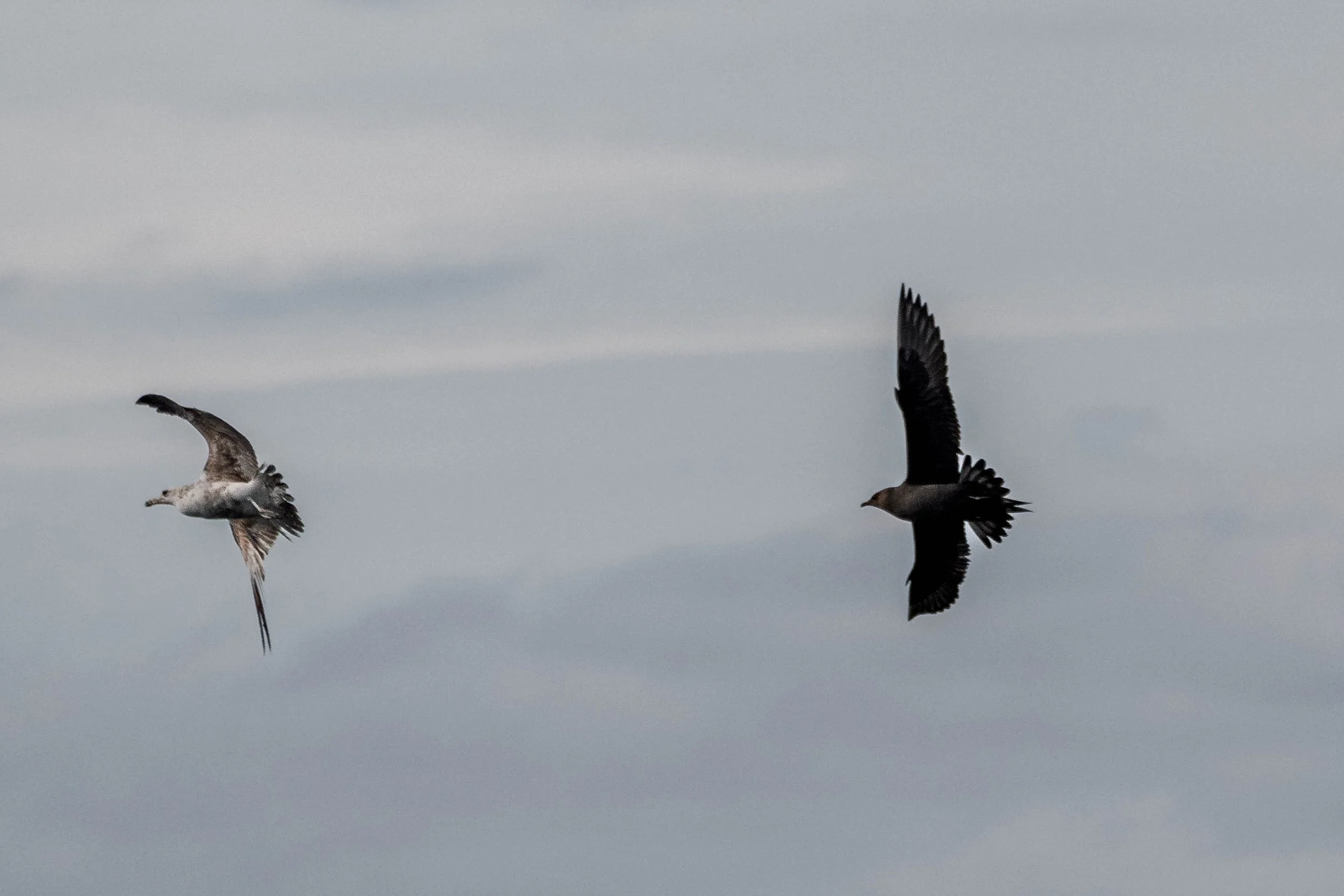Parasitic Jaegers earned their nickname from documented cases of kleptoparasitism, or purposefully stealing food from other birds/animals. Photo by Val Watson.