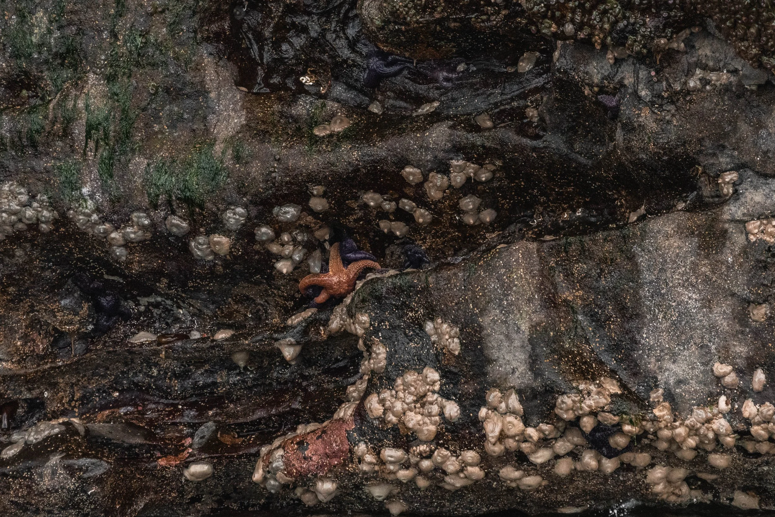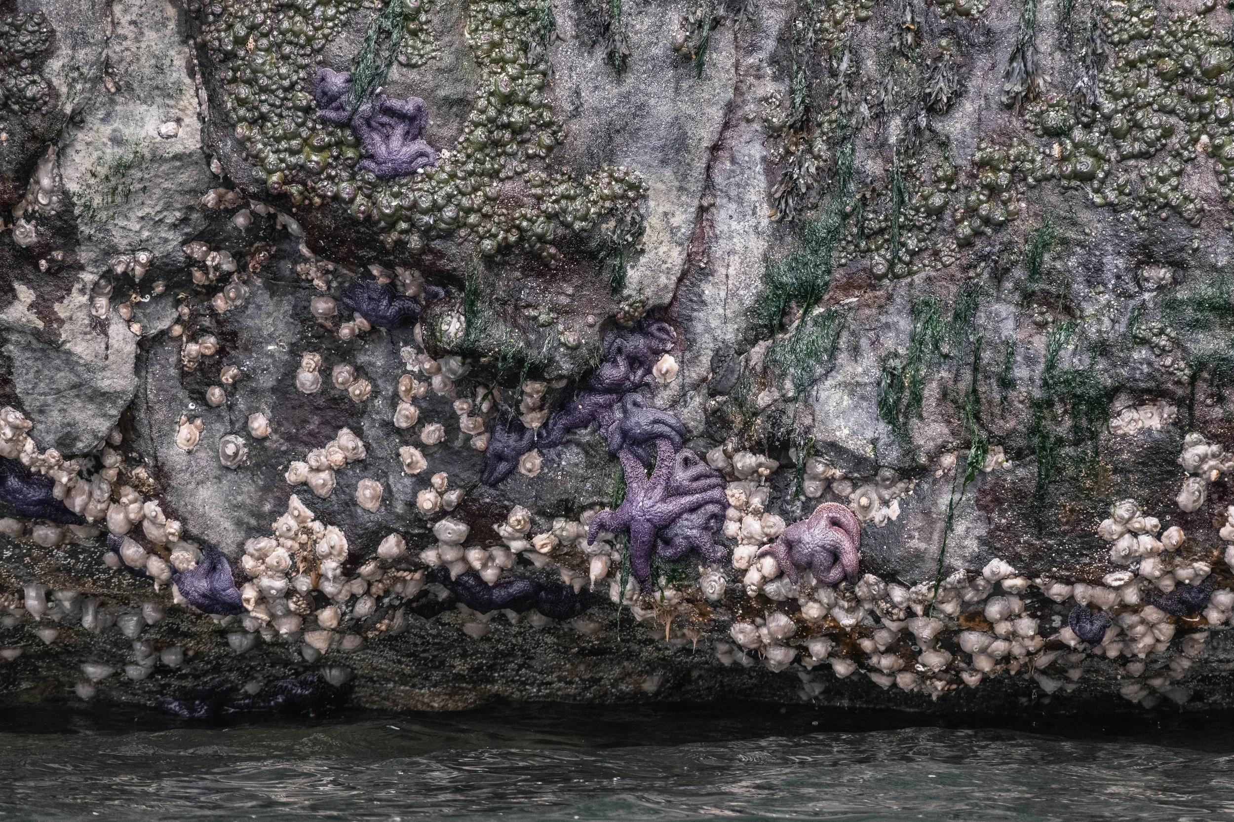 Sea stars and anemone at low tide along the Bluffs. Photo by Val Watson.