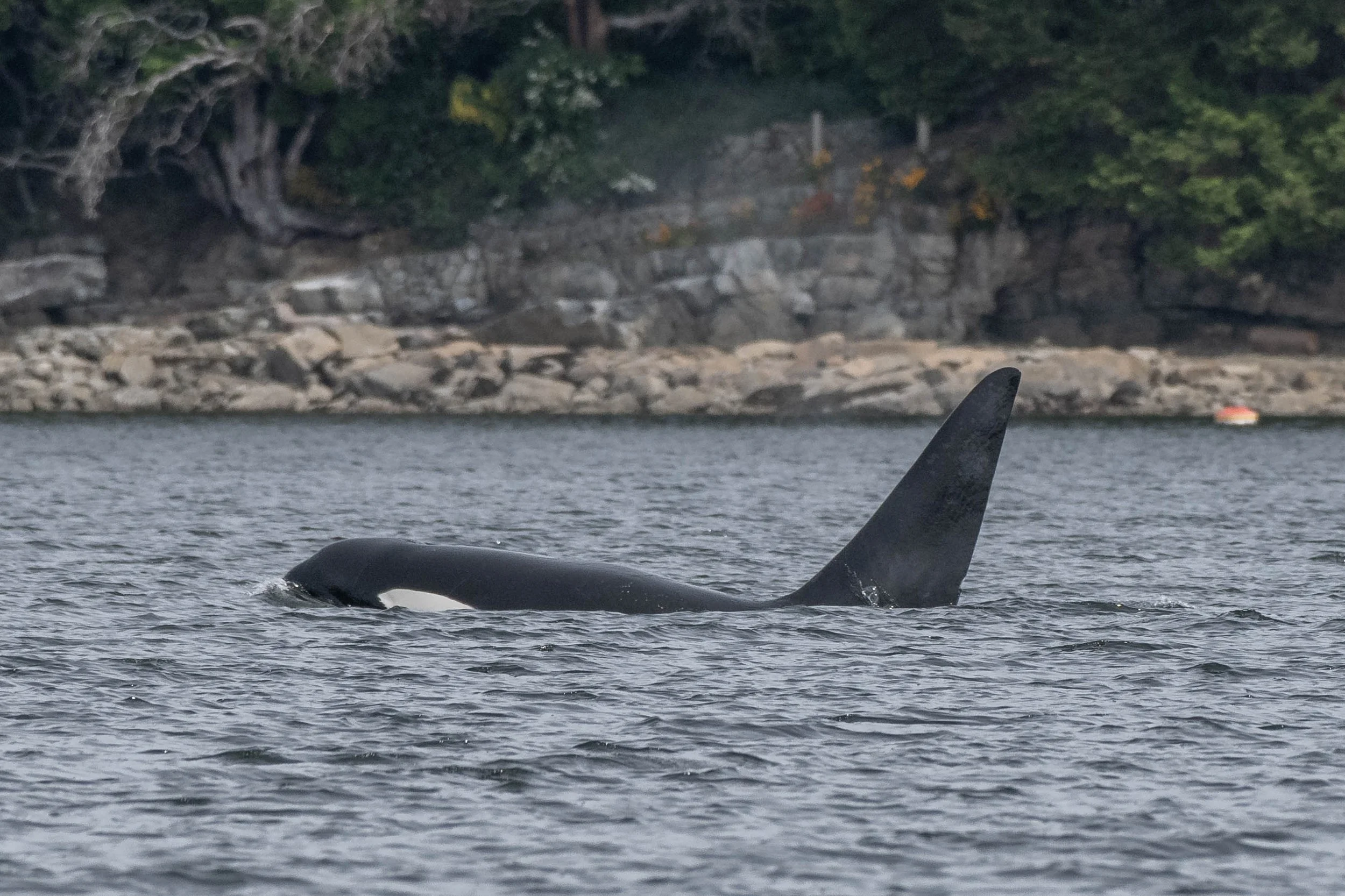 These two were lovely to watch, spending lots of time at the surface. At one point, Jude decided to play with a prawn trap, taking great pleasure in dragging the float around. It’s pretty common to see these guys playing with prawn or crab traps, as they are highly intelligent and curious about their surroundings. Although they are pretty good at not getting tangled in the traps, that’s not always the case! In 2020, DFO (Department of Fisheries and Oceans) was called when a young orca appeared to get stuck in the lines of a similar trap off Neck Point. While the young whale was able to finally free themselves, if they are more severely tangled, they face the risk of injury or drowning. With an assortment of fishing lines, stray nets, traps, and other marine debris left carelessly floating in the Salish Sea, entanglement is a serious concern for our whales, for both Orca and Humpbacks alike. Over 50% of the humpbacks in the Salish Sea have been involved in entanglements, with many exhibiting tell-tale scarring on their flukes and backs. This is why it is so important to properly secure lines and netting to reduce human impacts on these majestic creatures!