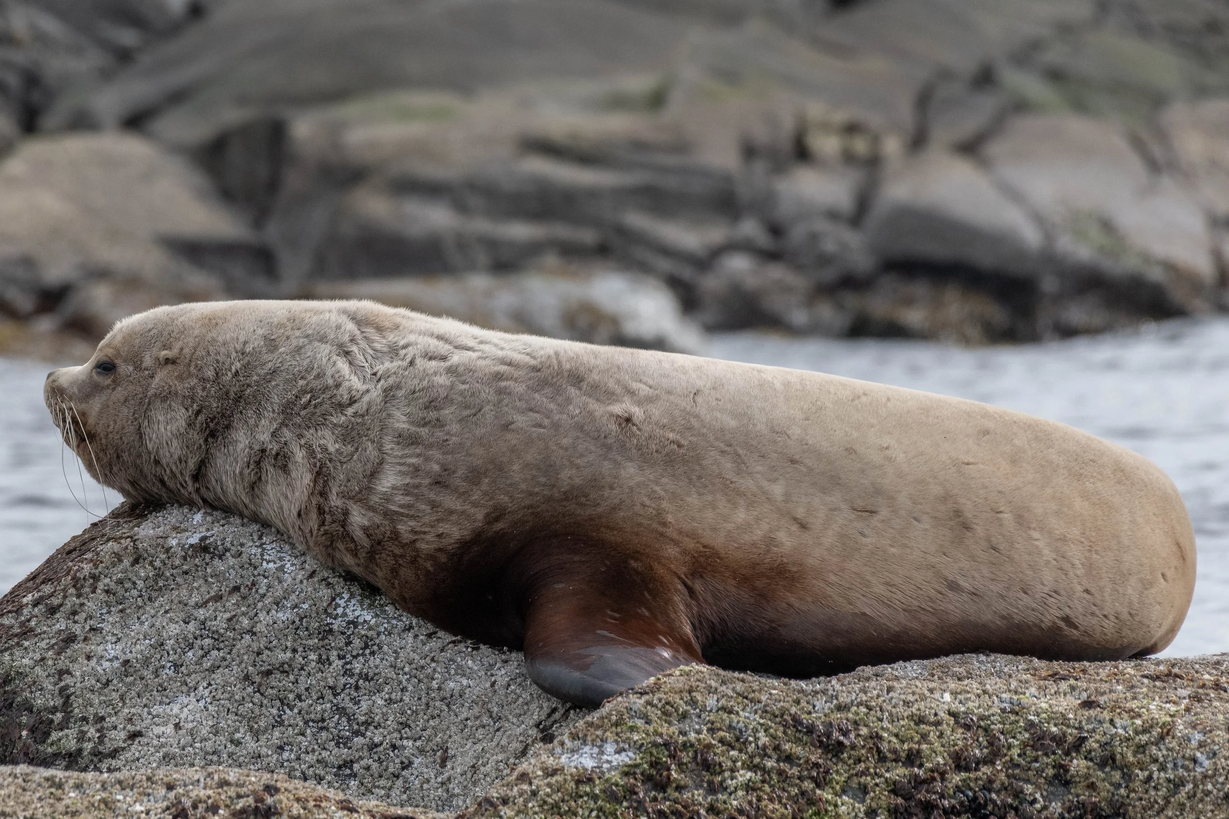 A large male Steller sea lion relaxing on the rock. Photo by Aly Kohlman