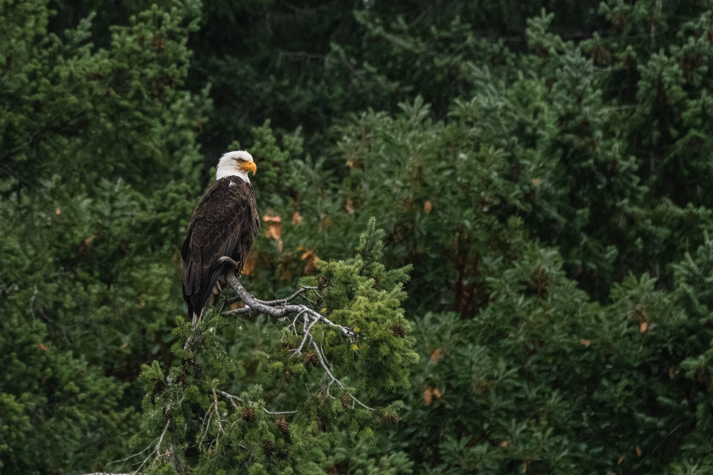We had one more success story to check in with before heading back to the dock, the bald eagle. These iconic birds faced a sharp decline in the Pacific Northwest during the 20th century due to habitat loss, hunting, and the widespread use of DDT, a pesticide that caused eggshell thinning and reproductive failure. Bald eagles were nearly wiped out in some areas, and bounties were even placed on them under the mistaken belief that they threatened livestock. After DDT was banned in the 1970s and strong conservation measures were put in place, bald eagle populations made a remarkable recovery. Today, they are once again a common and awe-inspiring sight, soaring above coastal treetops or perched proudly near the water's edge.