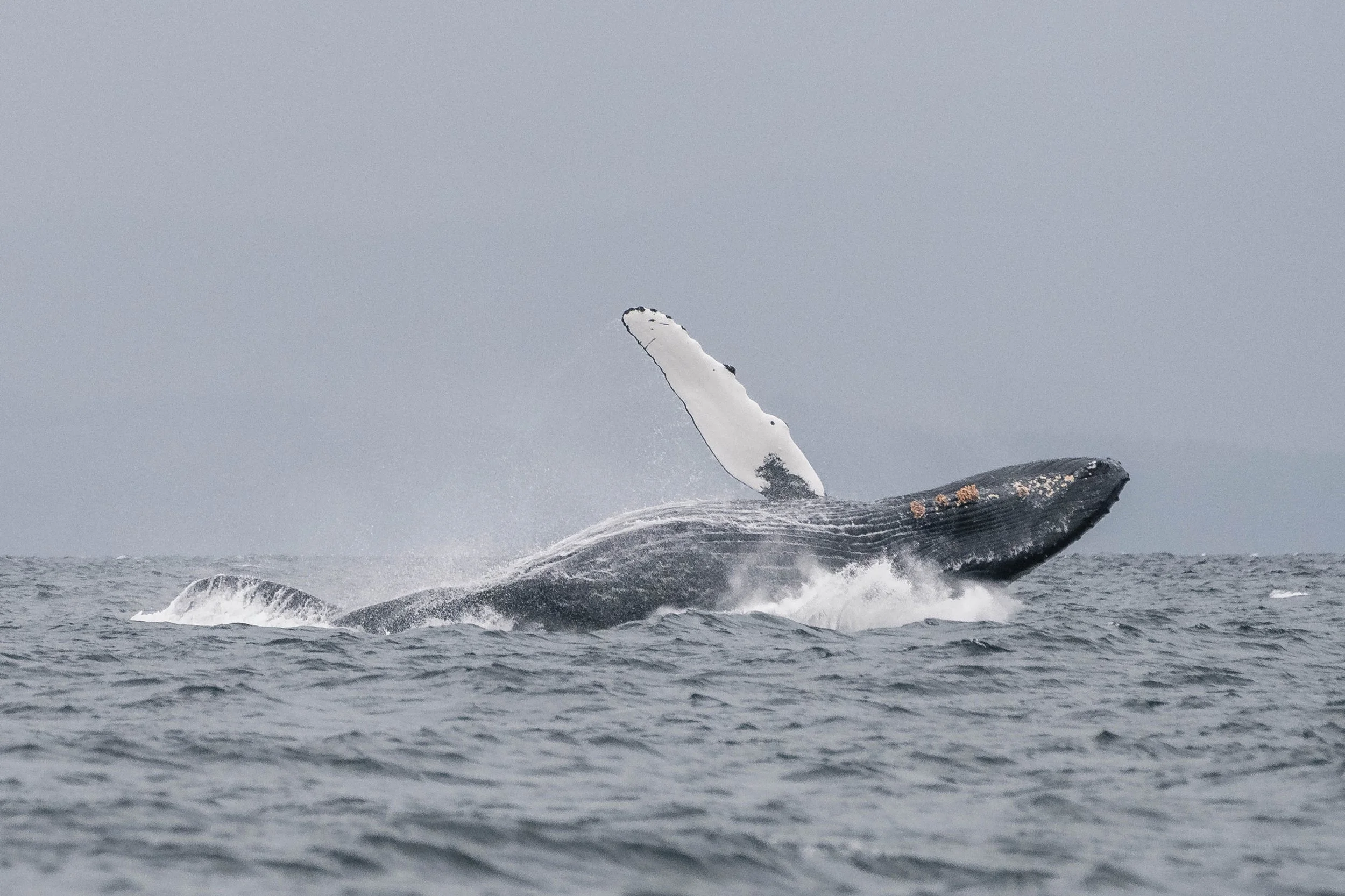 Once in Alaska, humpbacks take full advantage of the massive blooms of plankton and fish, feeding almost non-stop to build up the fat reserves they’ll need for their next migration south. They spend the summer months in these northern feeding grounds, gorging on krill, herring, and other small prey. By fall, the cycle begins again, as they return to the tropics to breed, give birth, and rest in warmer waters. The entire migration is a remarkable feat of endurance—an ongoing journey balancing the needs of feeding, mating, and raising young across vast stretches of ocean. After spending some time with our new friend, we decided to follow in its flukeprints and continue north—just like our Alaska-bound humpback!