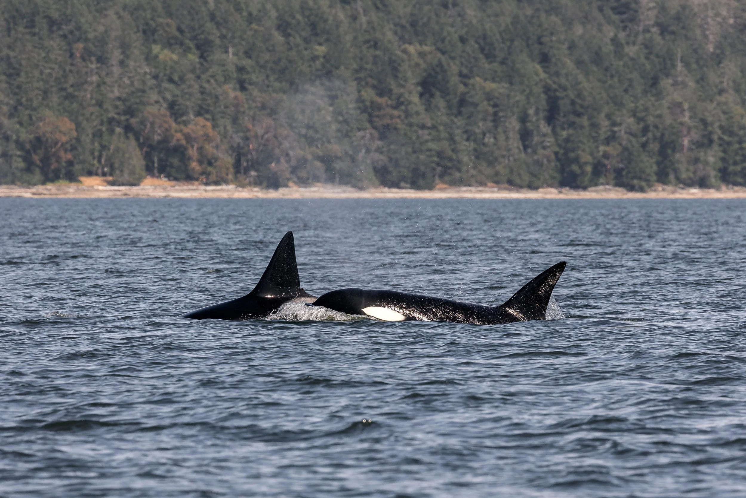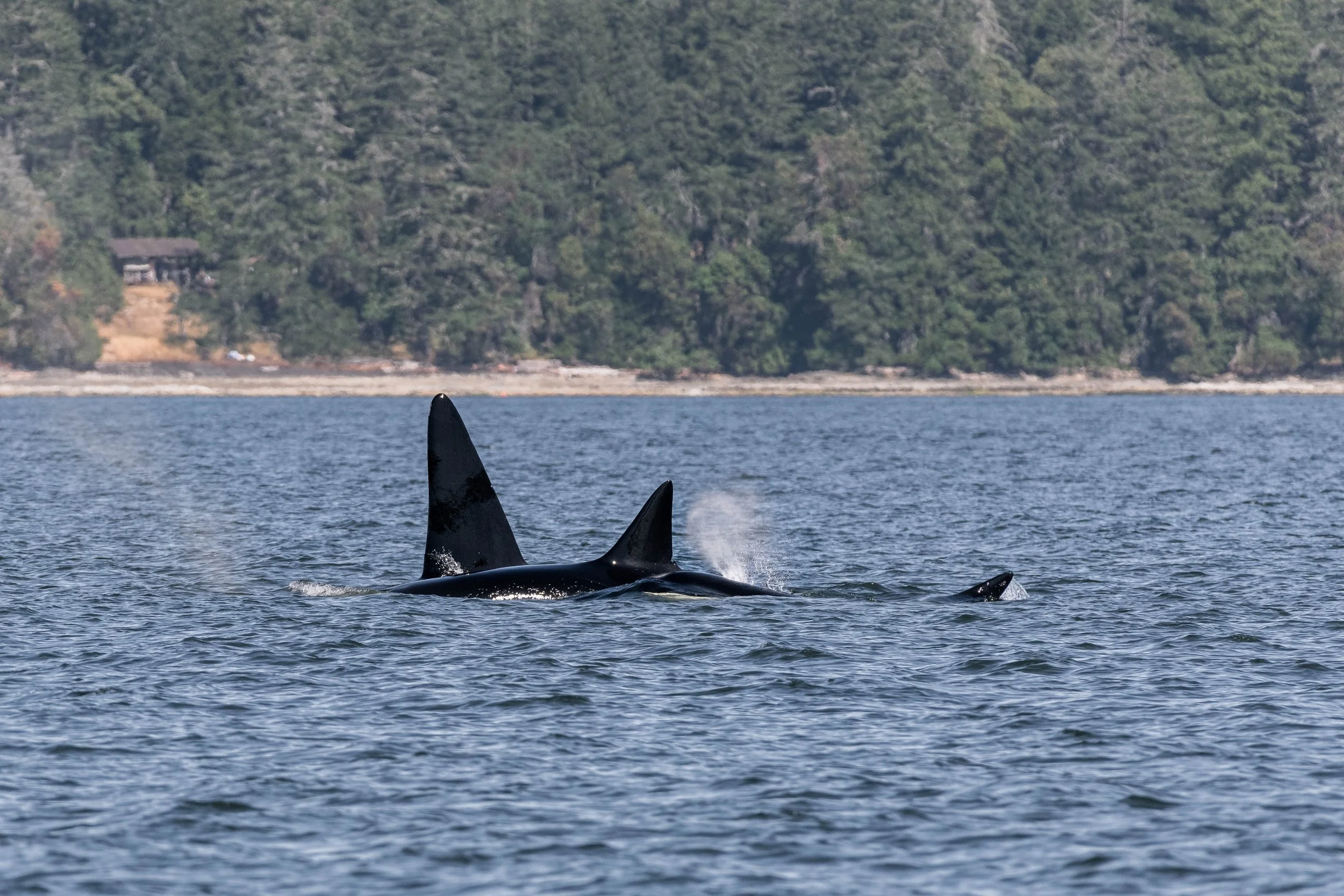 Can you spot both whales in this photo? T069 Komox is surfacing right in front of her son, T069C Kye. Photo by Aly Kohlman.