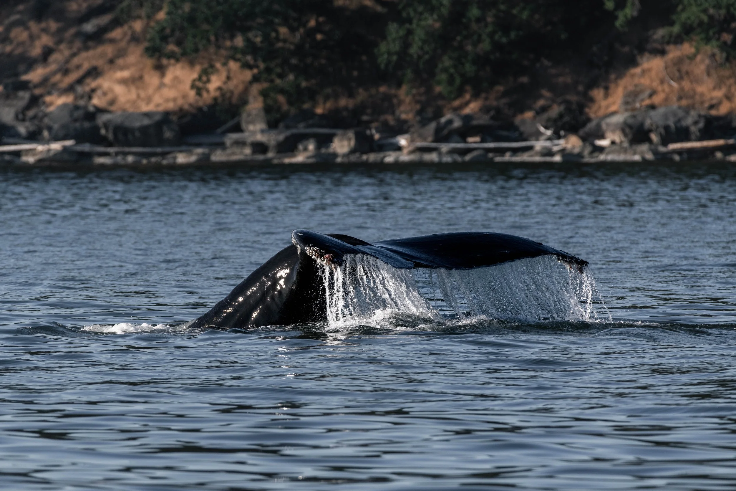 Next stop after leaving Zig Zag and her calf to their travels was Stinky Rock, where there were a bunch of very boisterous sea lions spending time on the rocks. These, along with the nearby Harbour Seals, are always entertaining to watch, partially because of their interactions with each other. When you see them socializing amongst themselves, you understand why so much of the Transient Orcas’ behaviour and culture revolves around not being detected by them, since they are so intelligent! Although when you see them face plant into the water off the rocks, maybe it’s not so obvious.