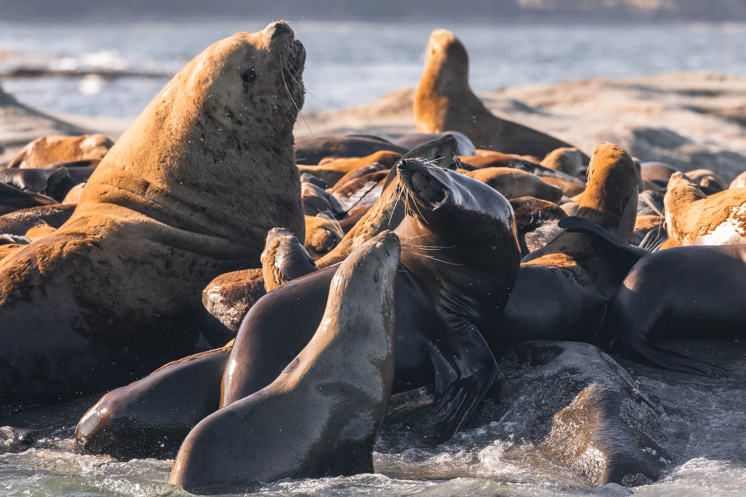 Fighting amongst the Steller Sea Lions on Stinky Rock. Photo by Hayleigh Hilbert.