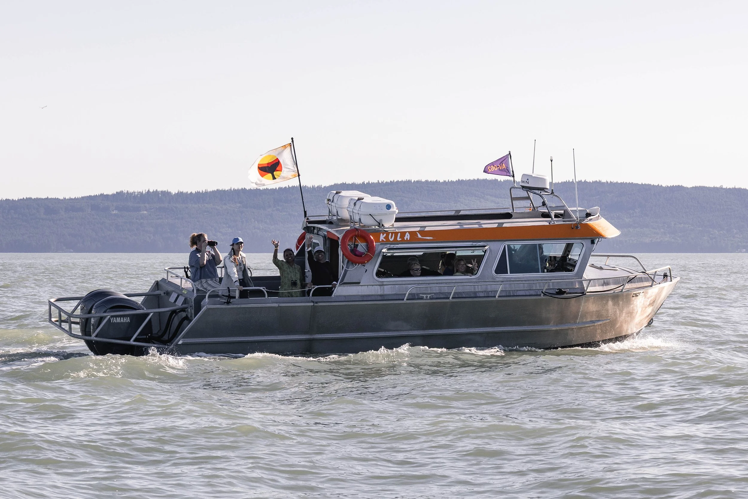 We left the dock on the afternoon of the 29th, excited to see what whales might be waiting for us out in the Salish Sea this time. We had an idea of who we might find, since we had spotted both species of whale (orca and humpbacks) during the morning tour. Sometimes that doesn’t mean much for the afternoon, as the whales are always on the move, but today we did end up spotting some of the same whales.