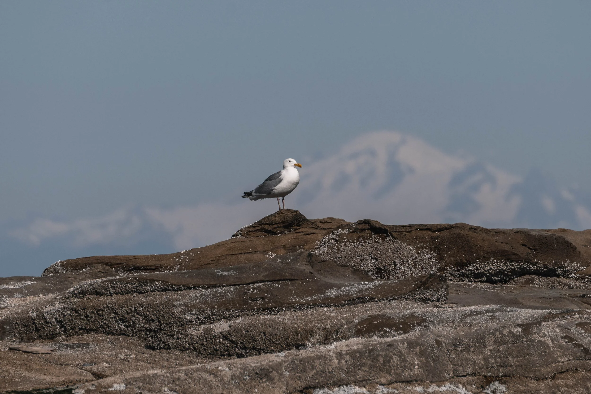 One boat ended up spotting another humpback whale not too far from Astroboy that we were able to figure out was Polyphemus (BCZ0342)! We saw only a distant fluke and then a closer look at the dorsal fin to confirm this, but since they were also feeding and doing quite long dives with only sporadic surfacing, we continued on our way. Both boats stopped at Stinky Rock next to view the pinnipeds that like to spend time there, before we continued searching in the Strait.