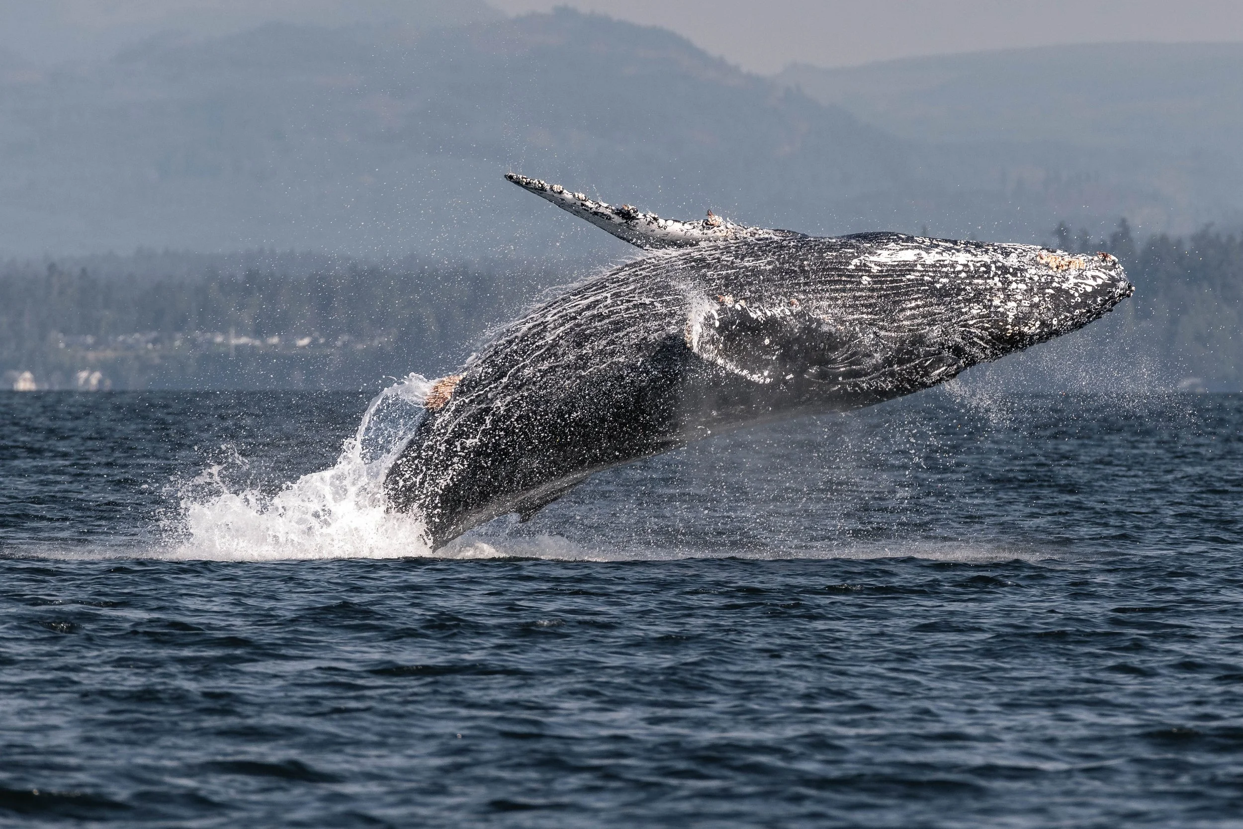 Last June, Vector made the news when they were spotted heavily entangled near Campbell River. It was a stressful time as onlookers tried to relocate Vector, to no avail. There was concern that Vector may have passed away from injuries from their entanglement, but thankfully, it appears that they were able to shed their gear naturally and have made a full recovery. They still show scars from the harrowing encounter, though, a strong reminder of the dangers humpbacks may experience when they travel through waters with debris in them.