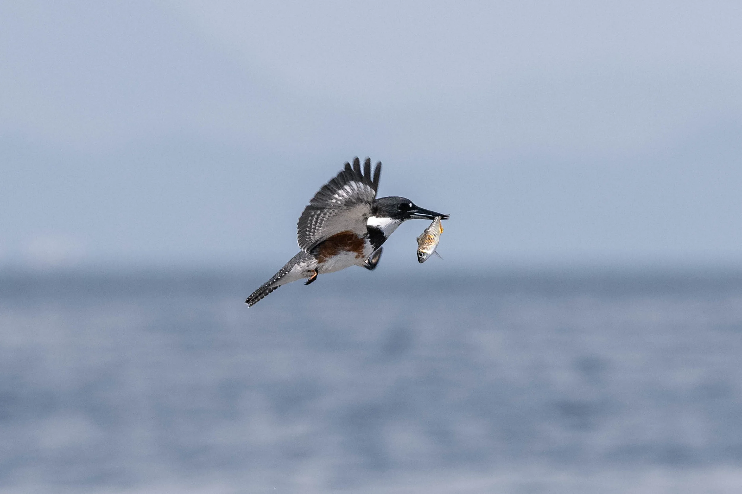 A Belted Kingfisher after a successful fishing adventure. Photo by Aly Kohlman.