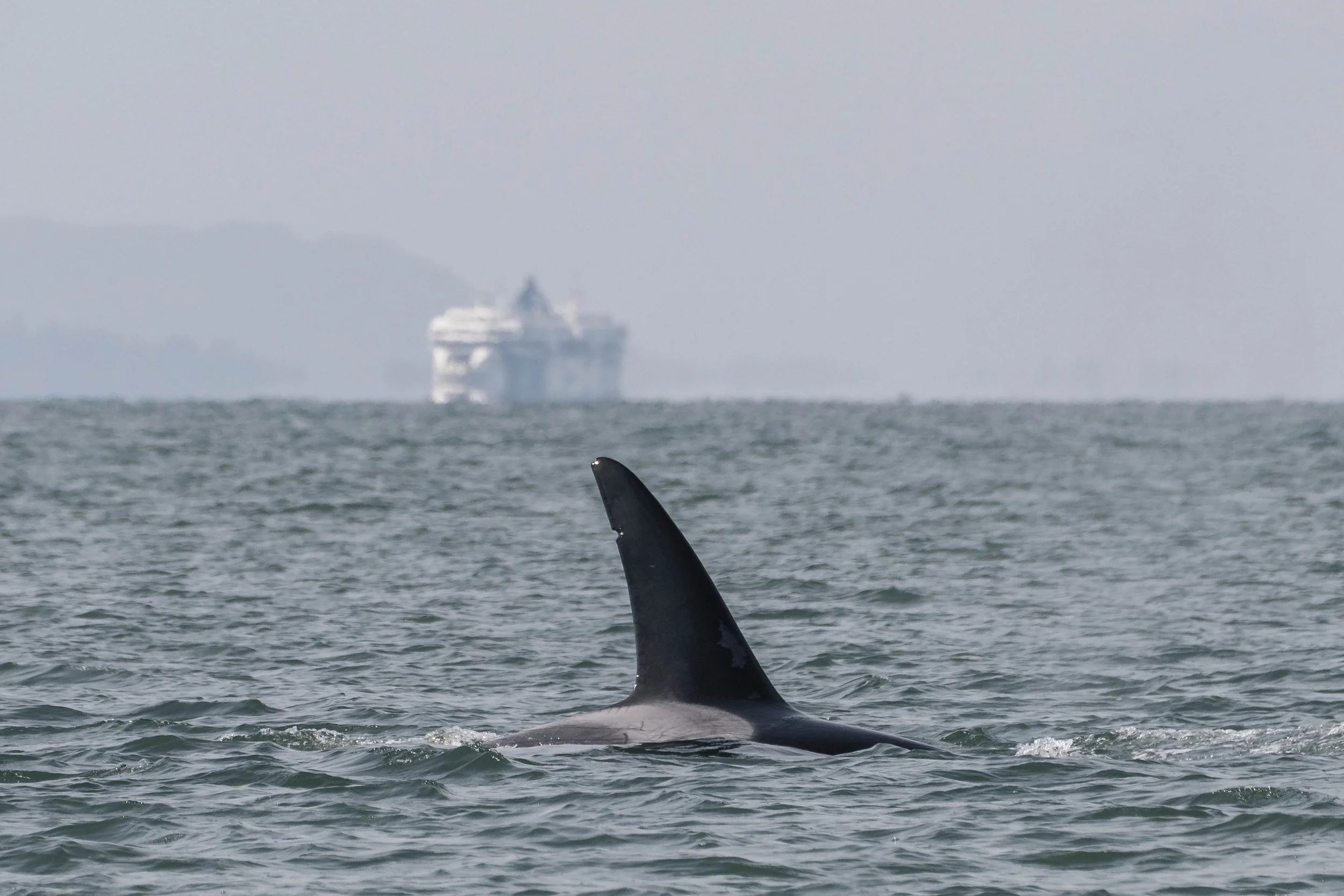 BCY0885 calf 2023’s dorsal fin. Photo by Desarae Poier.