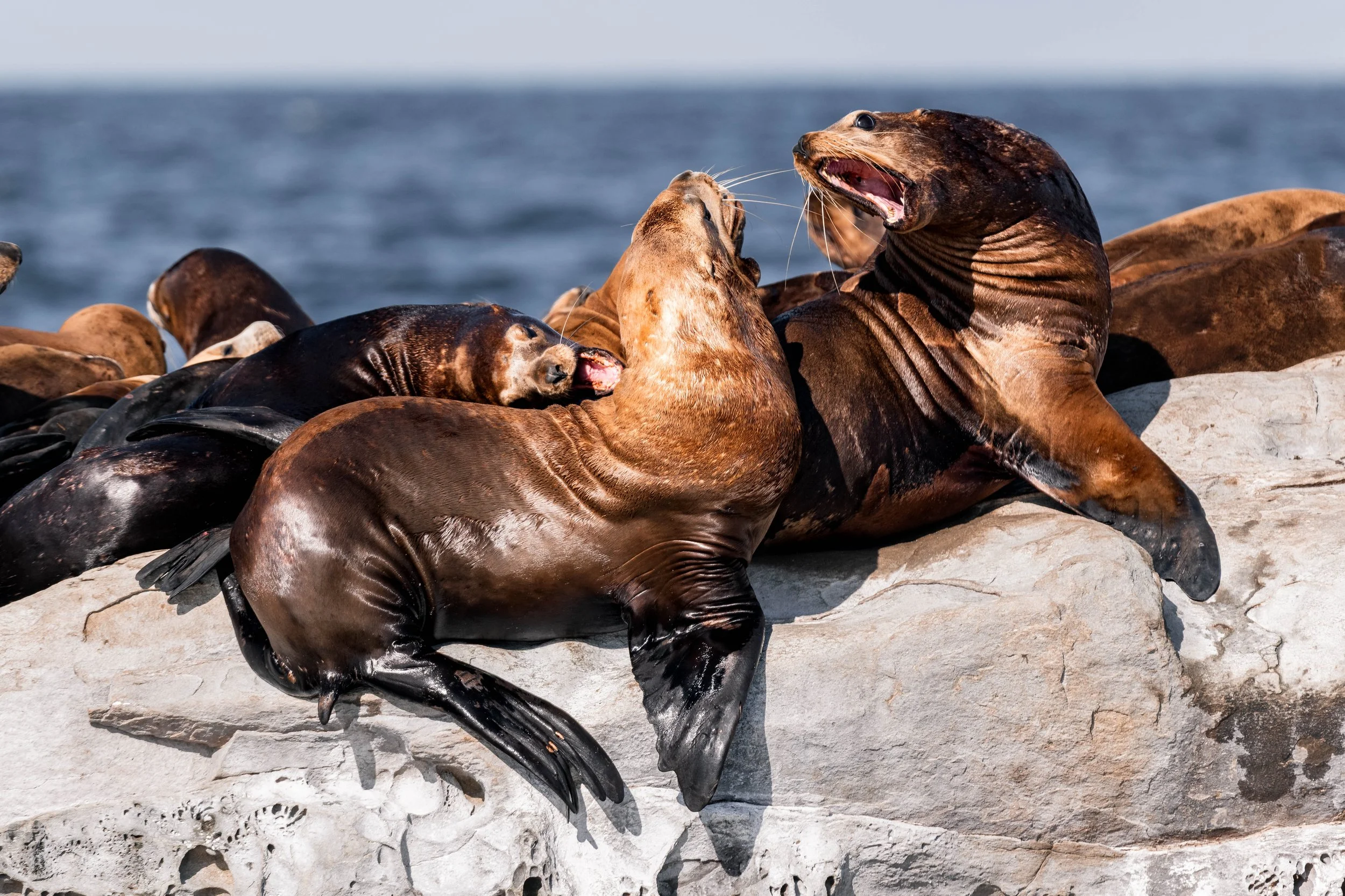 The Steller Sea Lions will regularly fight amongst eachother for the best spots on the rocks. Photo by Aly Kohlman.