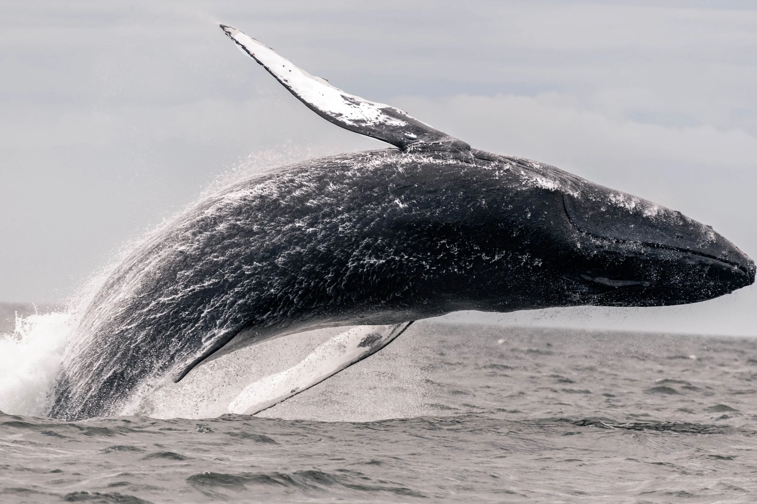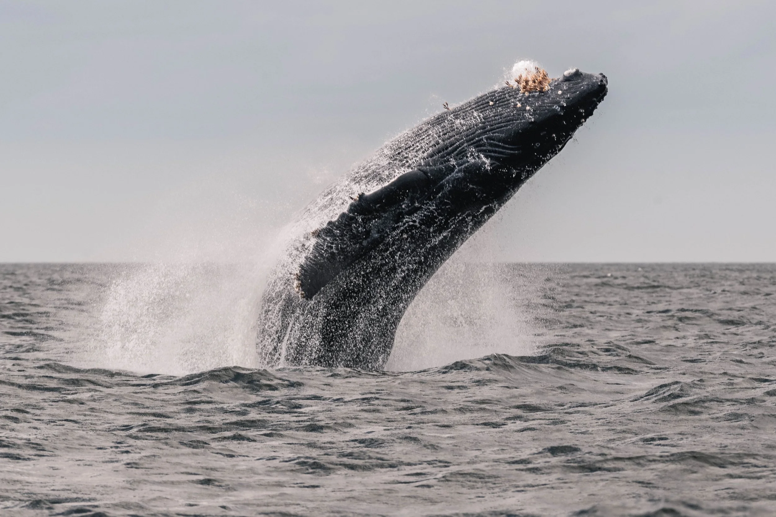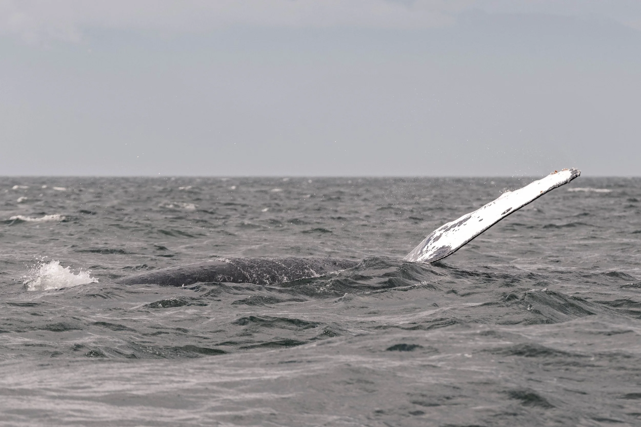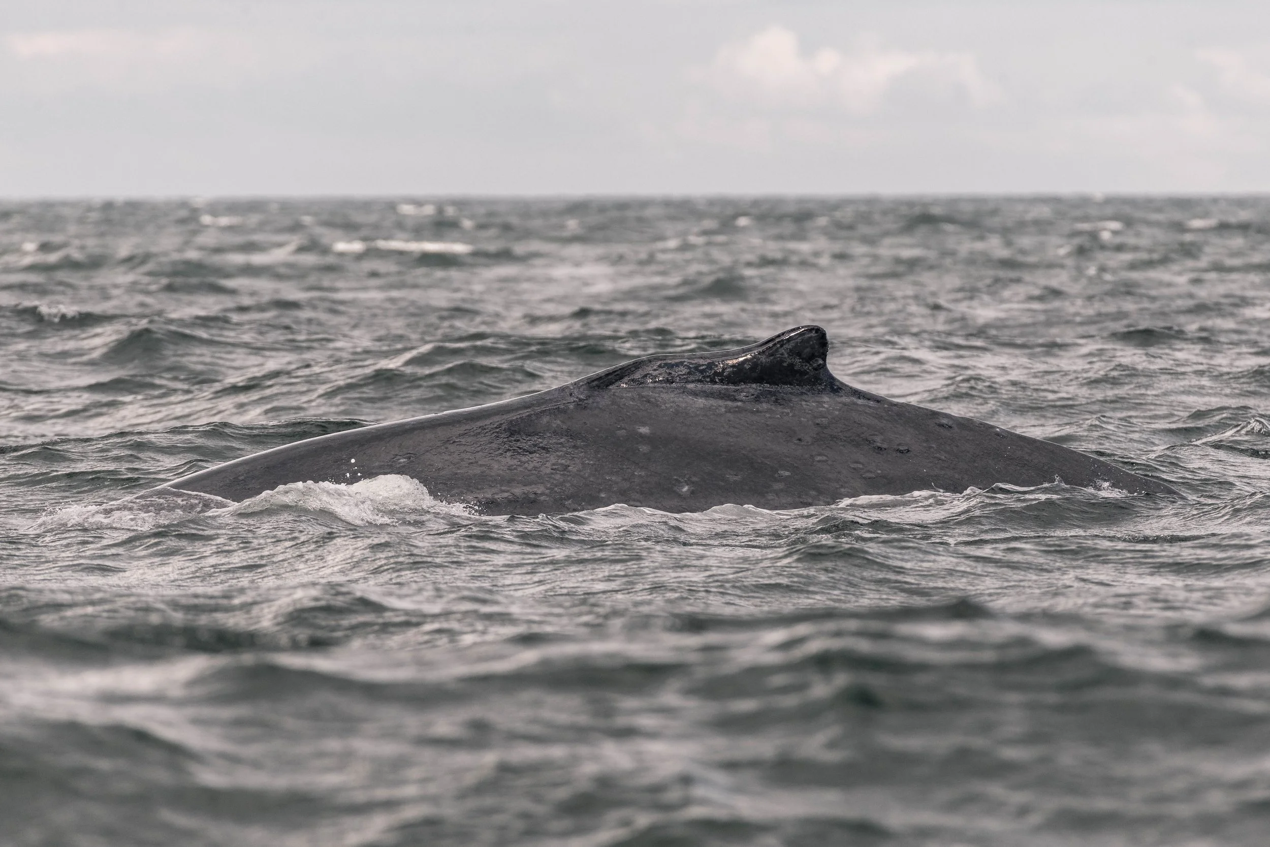 From there, we continued. Conditions were a little bumpy, and waves can make whale spotting tricky. When scanning the horizon, our eyes are trained to look for the signature signs of a whale: a tall blow, the curve of a dorsal fin, or the flash of a tail. With waves breaking, these clues can easily be hidden, so patience and persistence are key.