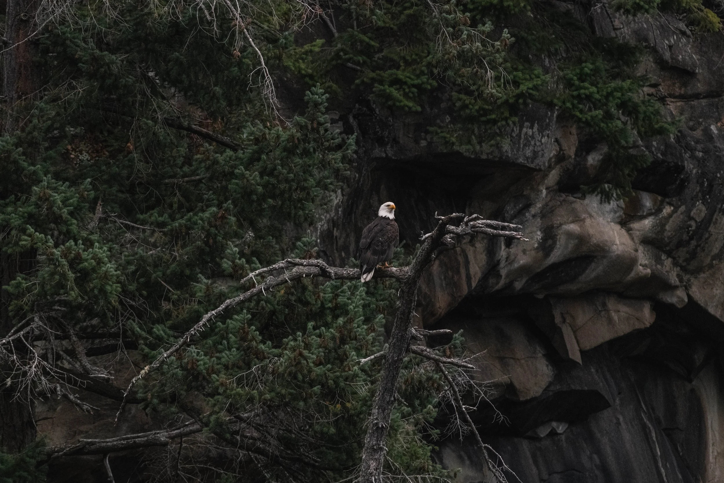 A Bald Eagle perched high in the trees. Photo by Aly Kohlman.