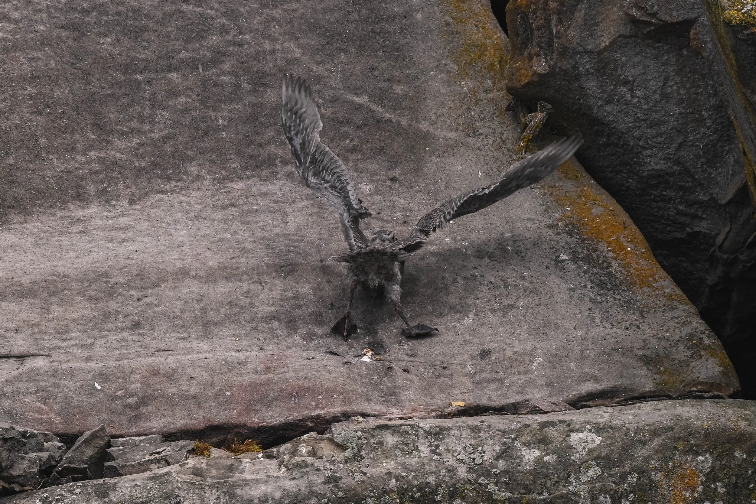 A very interesting pose from a gull pooping on the side of the cliff. Photo by Aly Kohlman.