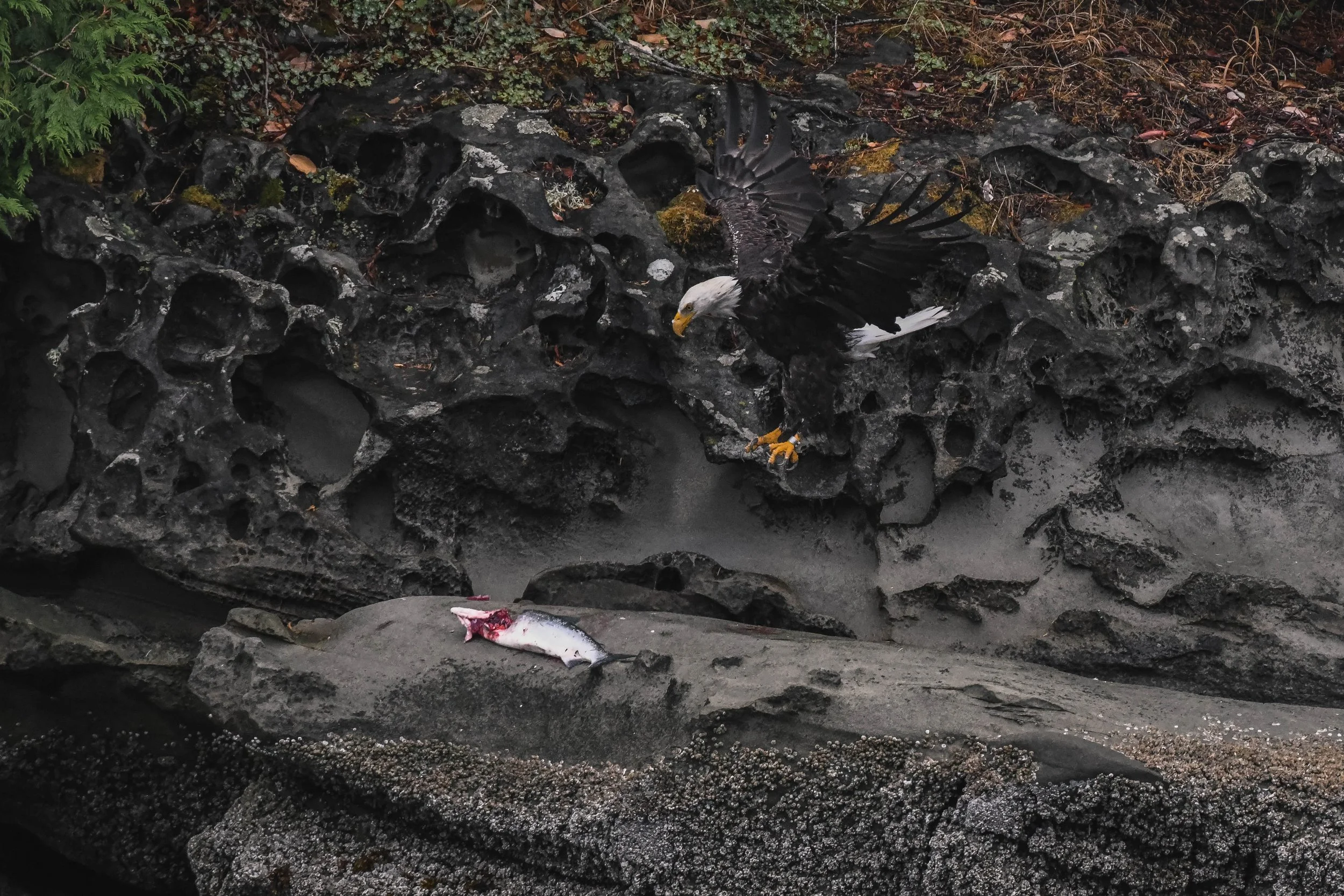 Bald Eagle with a fresh salmon. Photo by Hayleigh Hilbert.