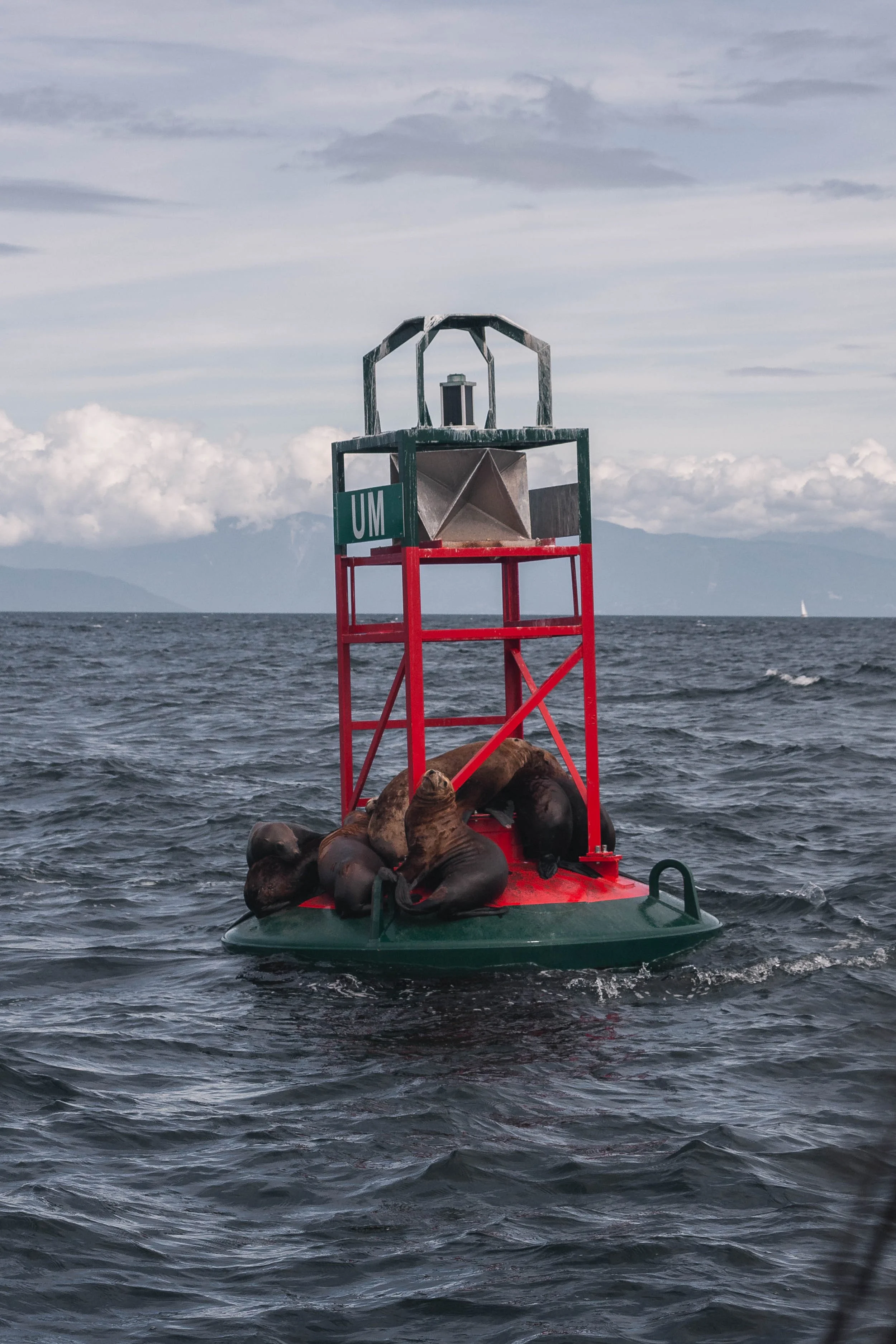 Steller Sea Lions on the Buoys. Photo by Jordan Robinson.