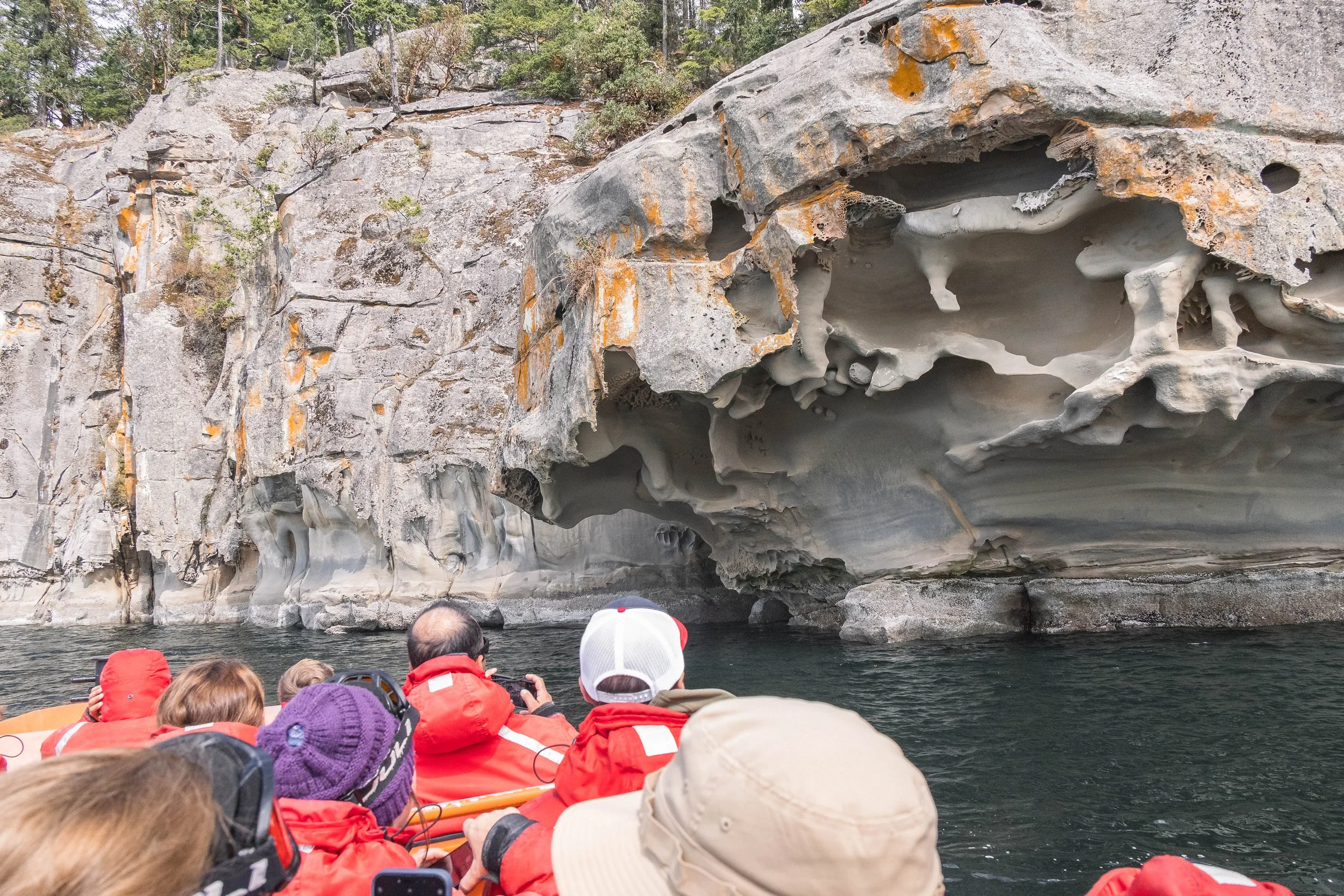 After Stinky, we had one more stop in store for us, at the Gabriola Bluffs. Here we also enjoyed seeing a bunch of birds spending their time in the area. An Osprey was circling overhead, keeping its keen eyes out for fish as it went. The cormorants use this area as both a nesting site and a perch, often spotted on the cliffside where the sandstone has worn away enough for them to gain purchase. Finally, we were treated to some fishing from a gull that swooped down, grabbing a fish out of the clear waters surrounding the cliffs, which are usually teeming with life! It was a thrilling conclusion to our day.