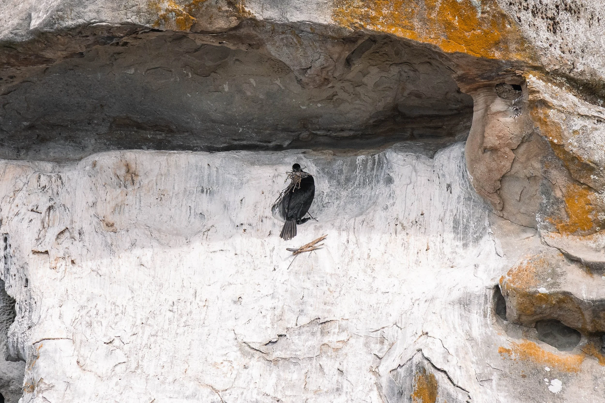 Cormorant collecting nesting material. Photo by Vanessa Verechahen.