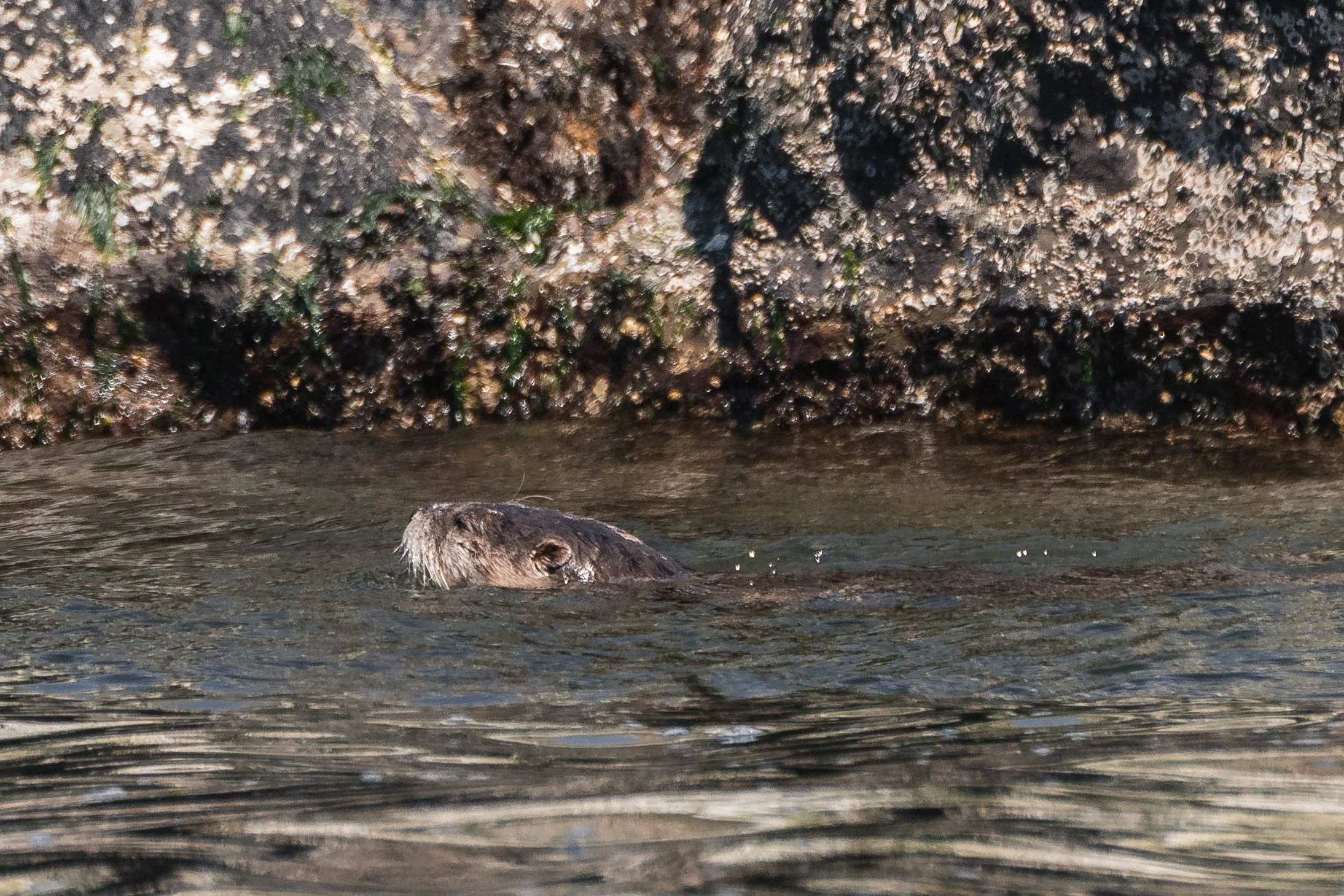 A River Otter paddling by Stinky Rocks. Photo by Val Watson.