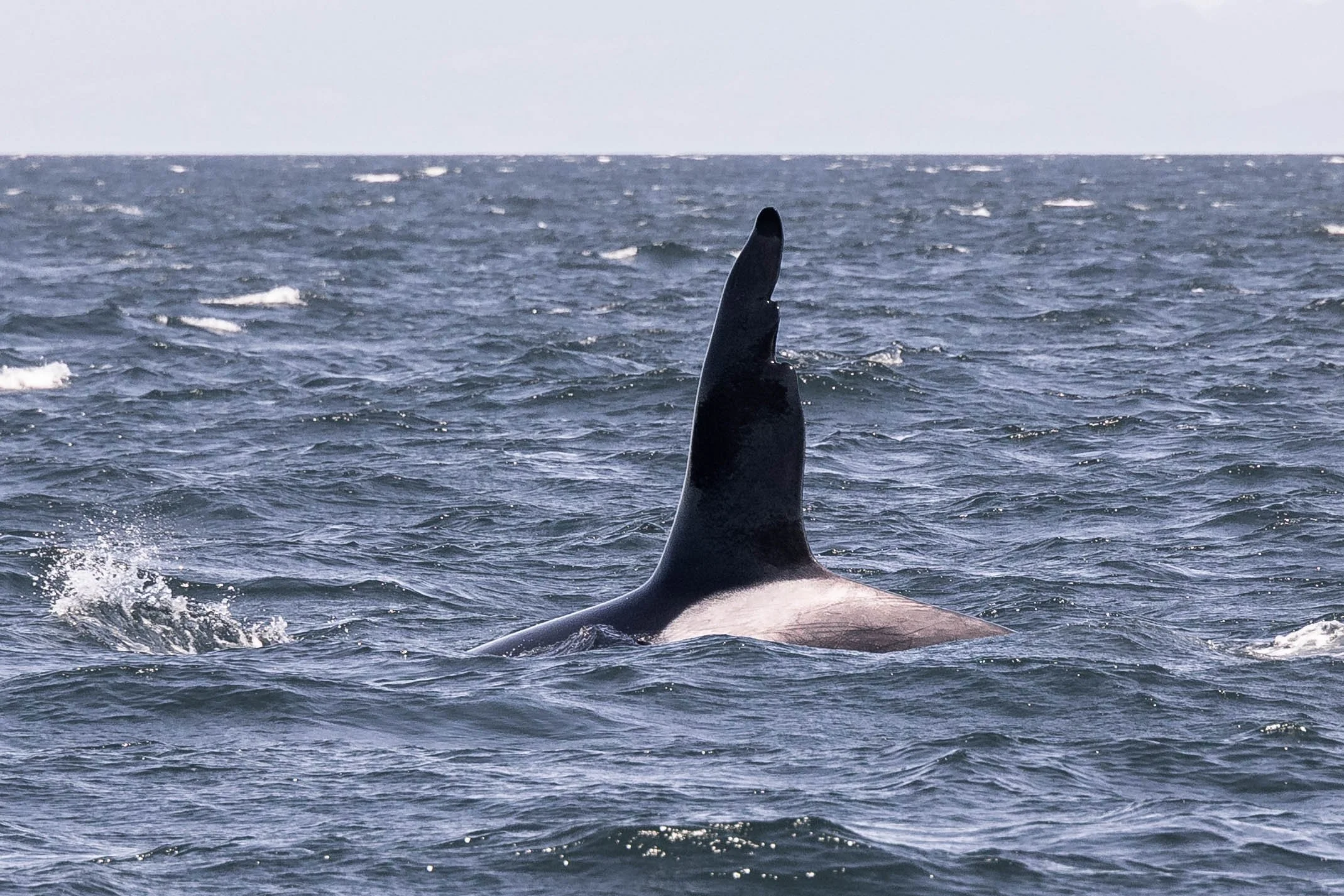 Chainsaw’s tall dorsal fin has two distinct notches in it, making him identifiable even from a distance. Funnily enough, his mother, Whidbey II, also has two notches, but they are significantly smaller and much, much harder to spot.