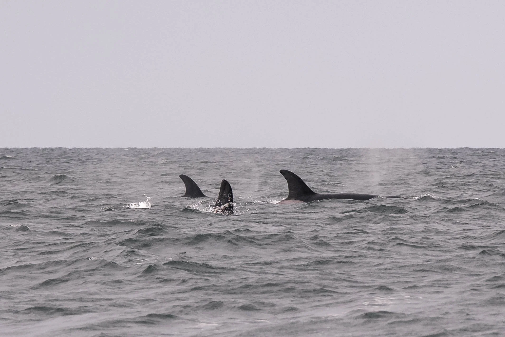T100F Estrella, T065A5 Indy, and T100C Laurel (tip of dorsal fin). Photo by Hayleigh Hilbert.