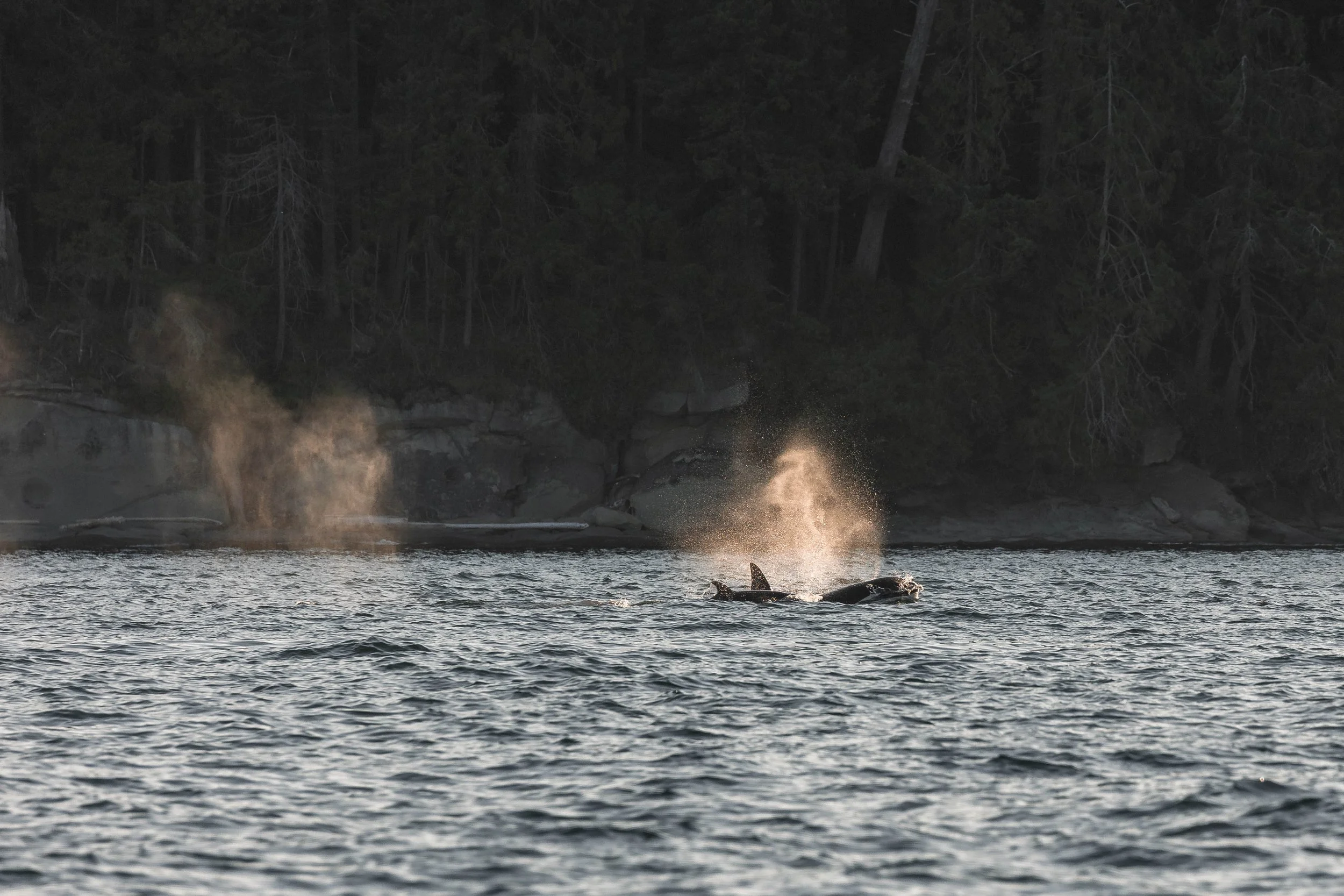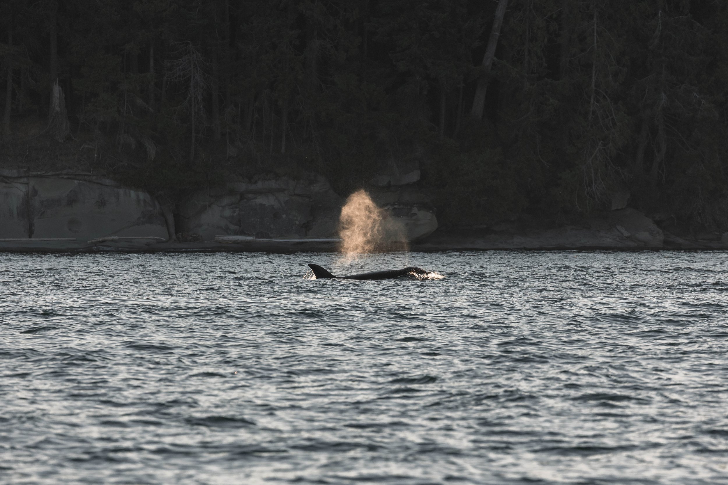 Just west of Valdez Island, these three were travelling steadily, likely scanning for their next meal. Nootka is a remarkable hunter, her speed and precision are legendary among those who’ve spent time watching her. On one occasion, we witnessed her take her family from travel to hunting, to eating, and back to travel again, all in under five minutes! With efficiency like that, it’s no wonder this family is so successful.