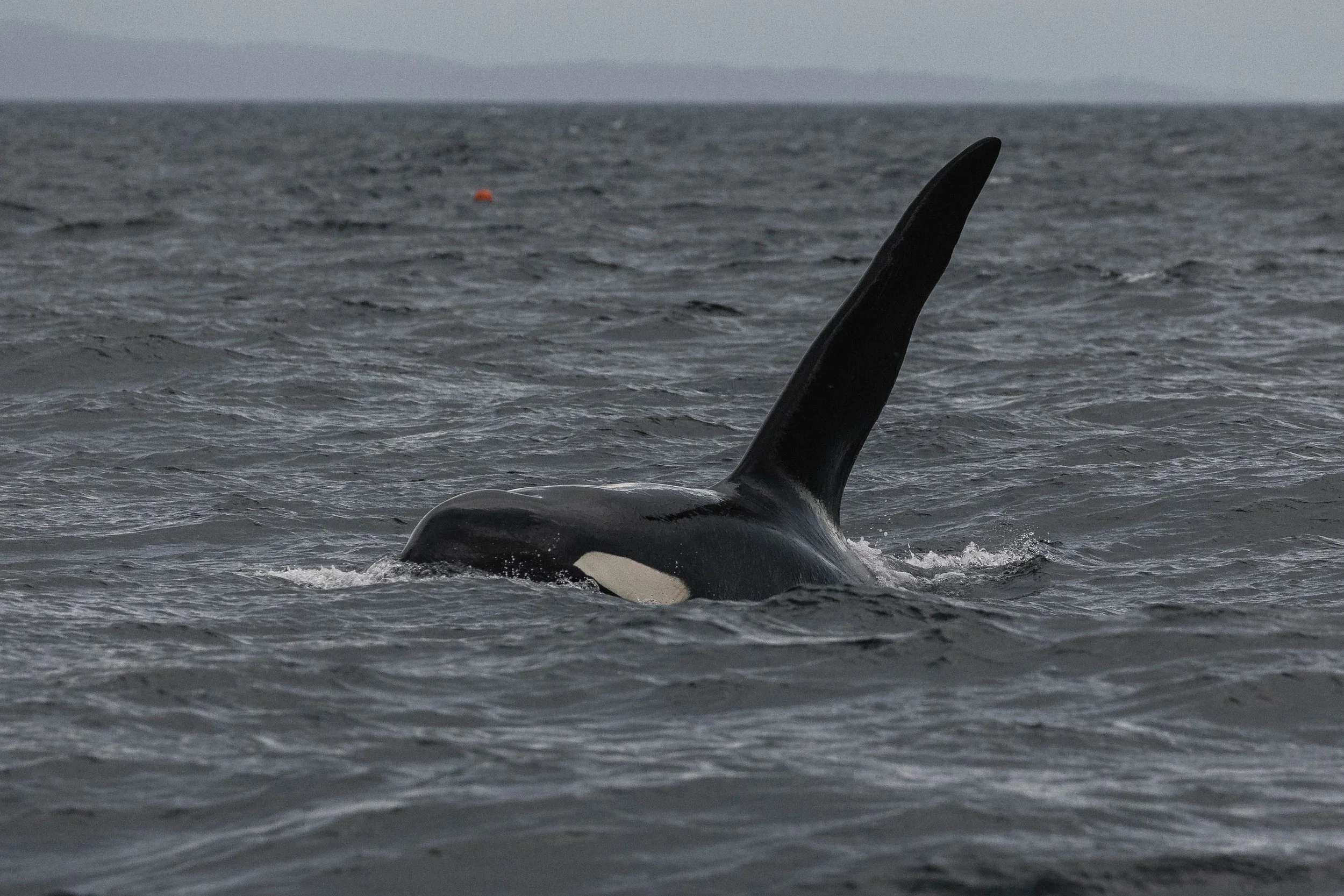 From this angle, T019B Galiano’s dorsal fin lean is very obvious! Photo by Jordan Robinson.