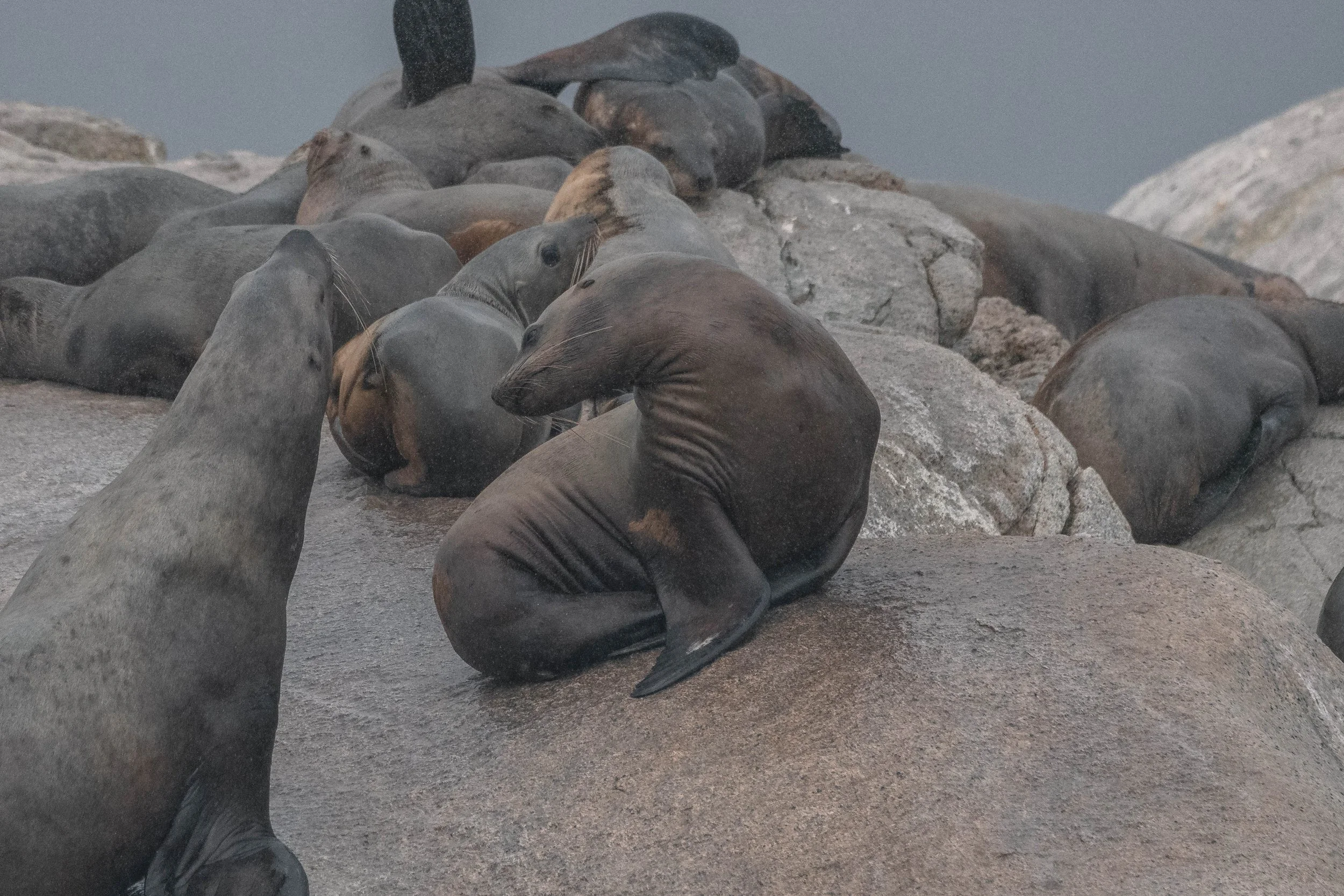 A colony of Steller Sea Lions at the White Islets. Photo by Desarae Poier.