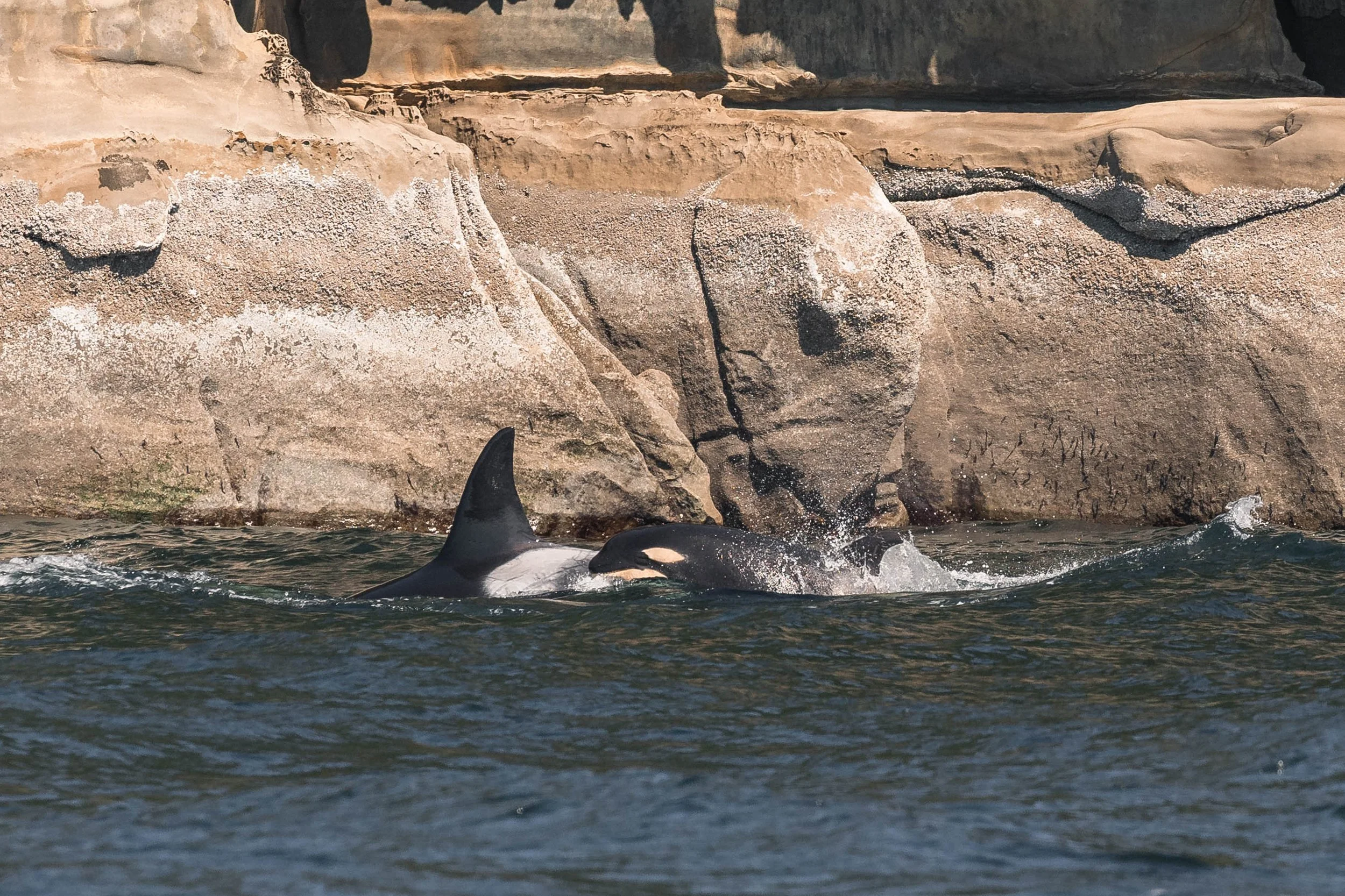 T002C1 Rocky surfacing just behind his mom, T002C Tasu. by Jordan Robinson.