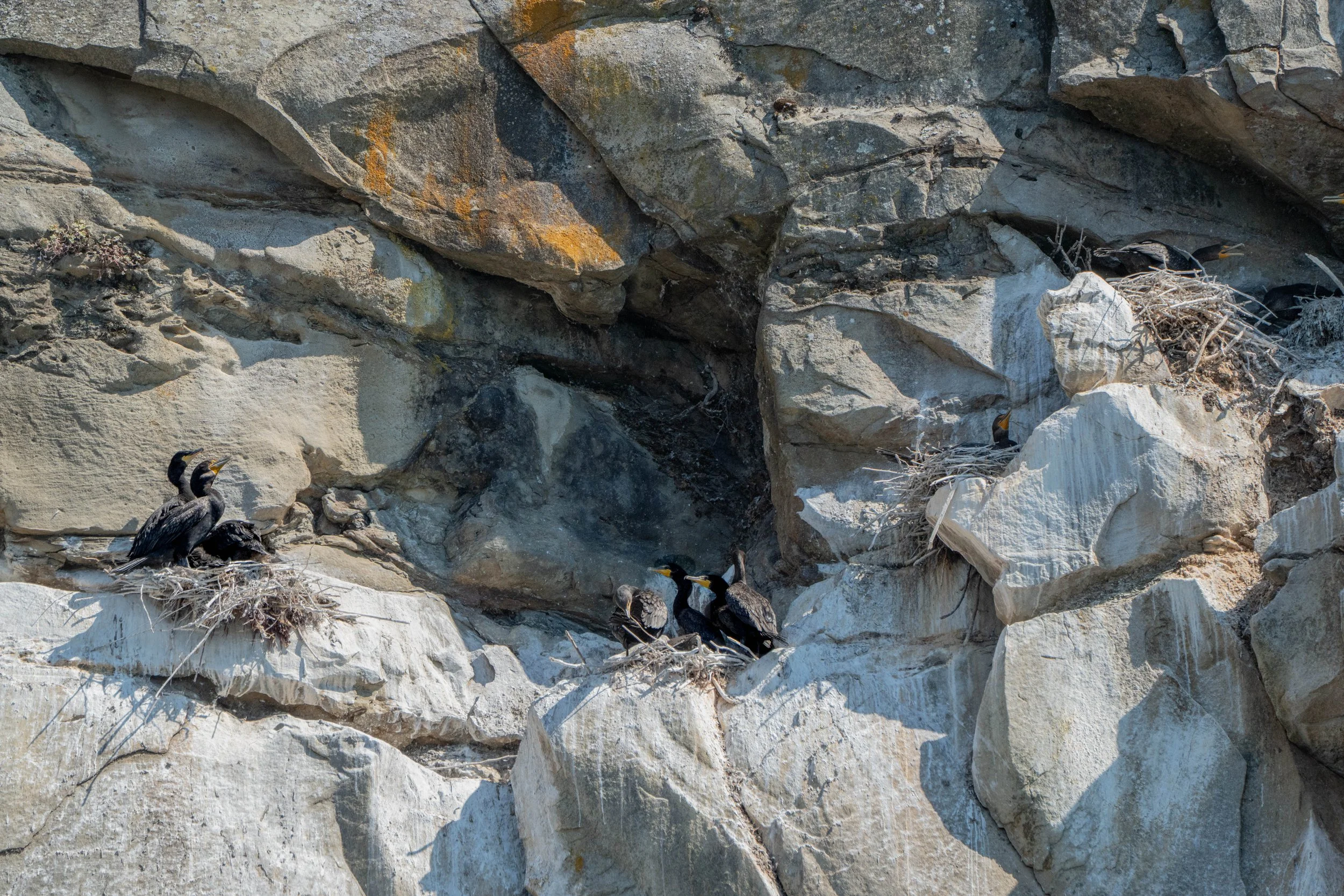 After spending some time with these two, we continued on our way, braving the waves to continue our search. And while we didn’t see any humpbacks today, we did see a ton of pinnipeds! Guests were treated to the sweet sights of Harbour seals lounging in the surf, and Steller Sea Lions roaring on the rocks. We finished up the day at the Gabriola bluffs, checking out the last of the cormorant chicks for the season.