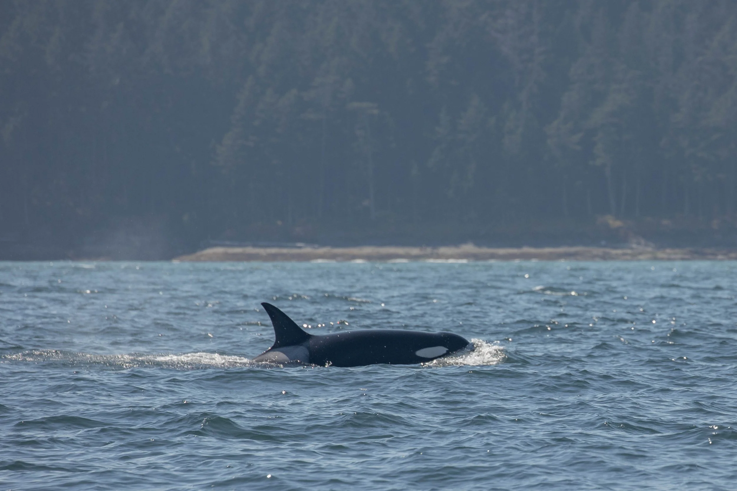 Whidbey has had a very successful lineage so far, with three known children of her own and nine grandchildren, ranging from ages 2 to 21! Her daughters have dispersed and started families of their own, while her son Chainsaw has remained by his mother’s side, and likely will for the rest of her life. Orca mothers tend to favour their sons over their daughters, caring for them regardless of age. While it’s not uncommon for an adult male to disperse, many eventually return to their mothers later in life. From an evolutionary standpoint, it is advantageous for a mother to have sons over daughters, as males can reproduce freely without the same caregiving obligations females face. That being said, this extensive care for sons often comes at a cost to the mother’s own reproductive success.