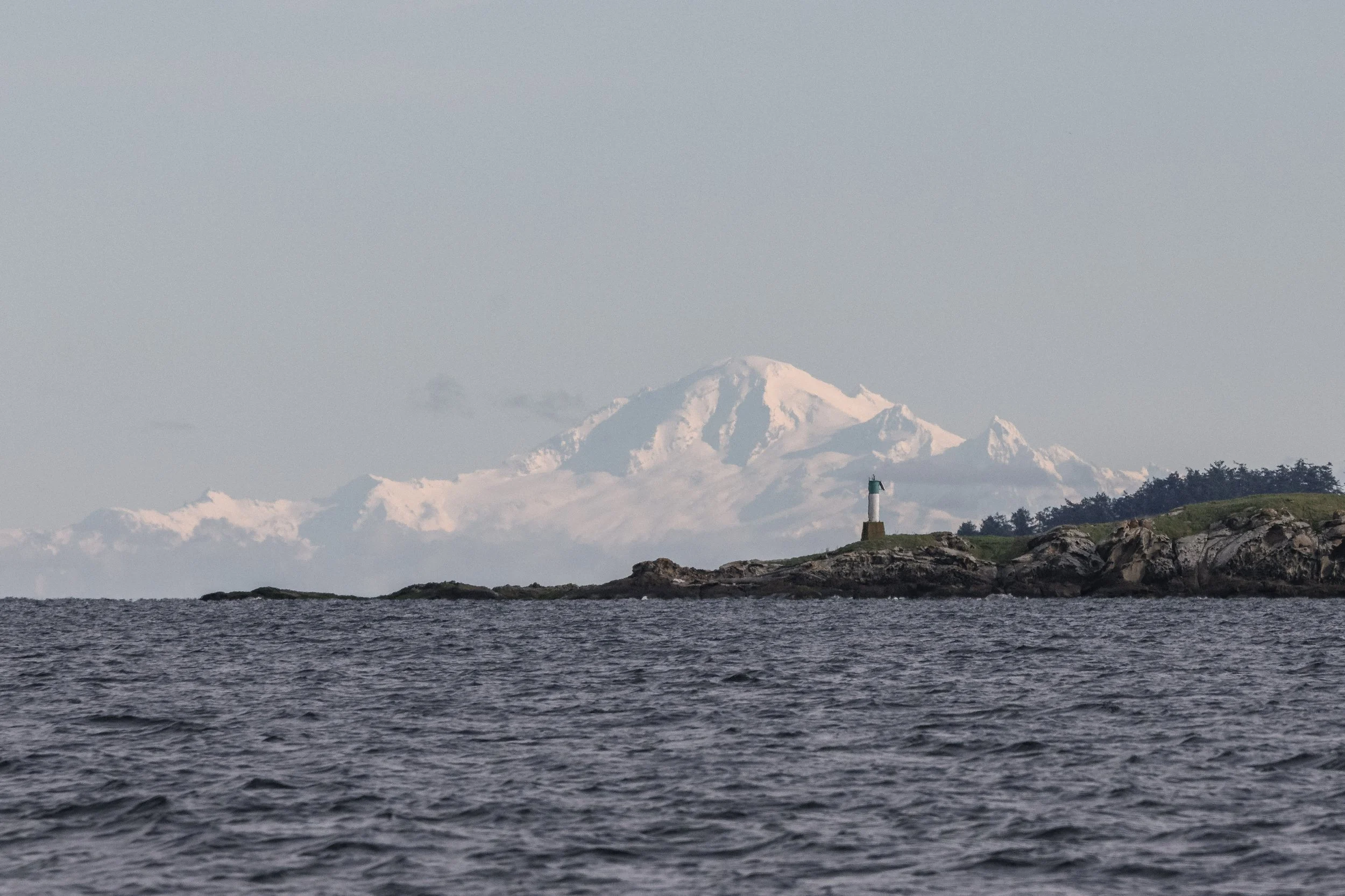 A Fata Morgana, or mirage, of Entrance Island with Mt. Baker behind it.