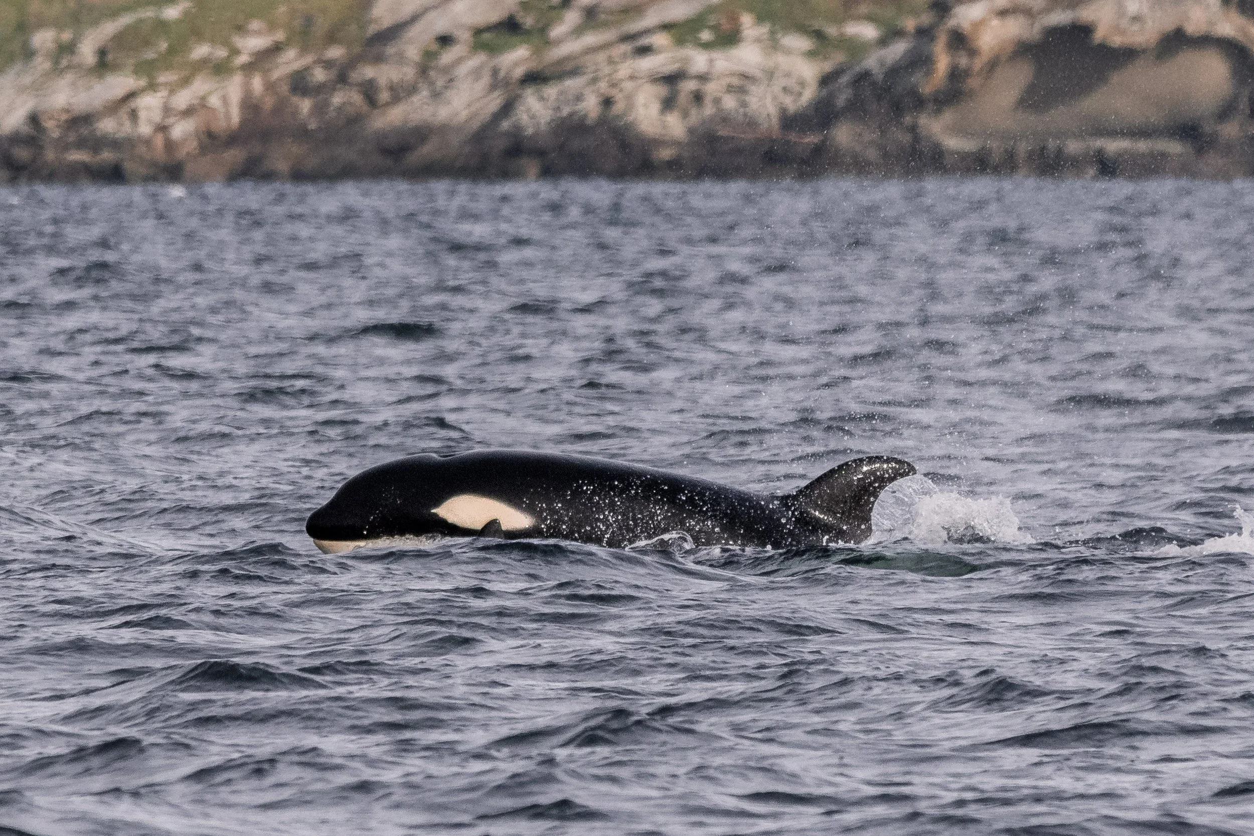 From there, we continued through Northumberland Channel back towards our home port, where another dorsal fin appeared. It was none other than Cooper, racing through the channel toward where we had left the other whales earlier. He seemed determined to join the gathering, as he was travelling very very fast as we watched him!