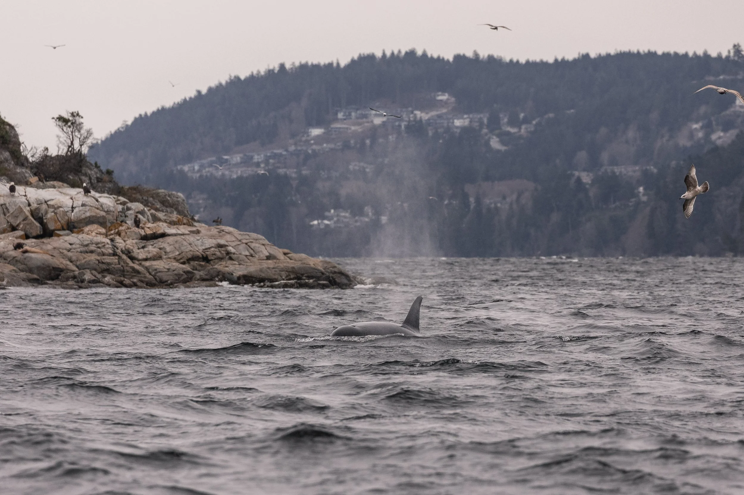 With a mix of anticipation and curiosity, we cast off the dock aboard Cascadia, our open vessel, bracing for a forecast that promised wind and rain. Bundled into our flotation suits, we prepared for a classic early-season adventure on the Salish Sea. The initial plan was to seek shelter among the Southern Gulf Islands, where calmer waters often provide a comfortable route on blustery days. But as is so often the case out here, the wildlife had its own agenda. A vague report had come in of activity just north of Nanaimo, near the shores of Lantzville. Curious and hopeful, we adjusted course, and what we found just around the corner from home was nothing short of extraordinary.
