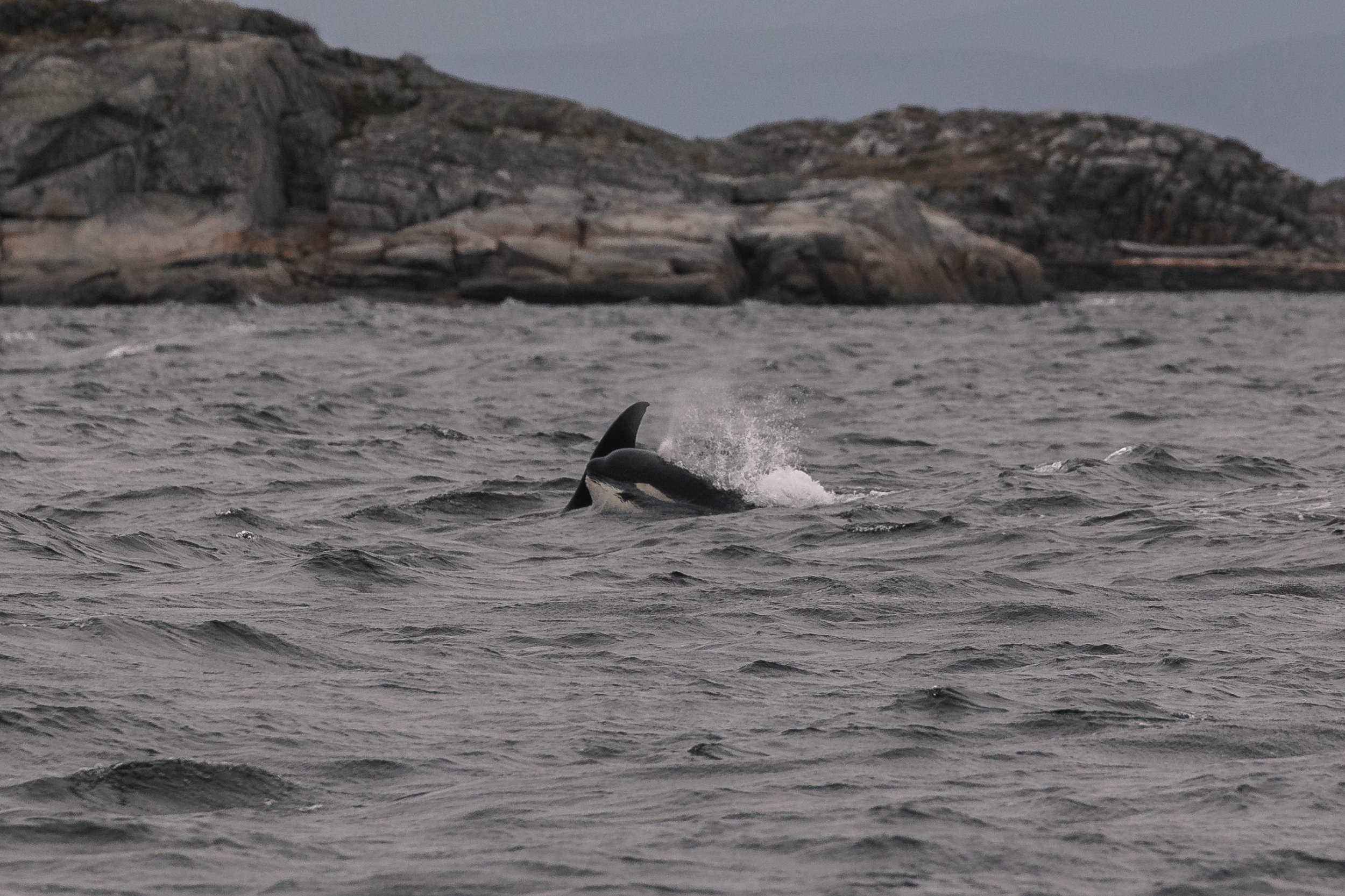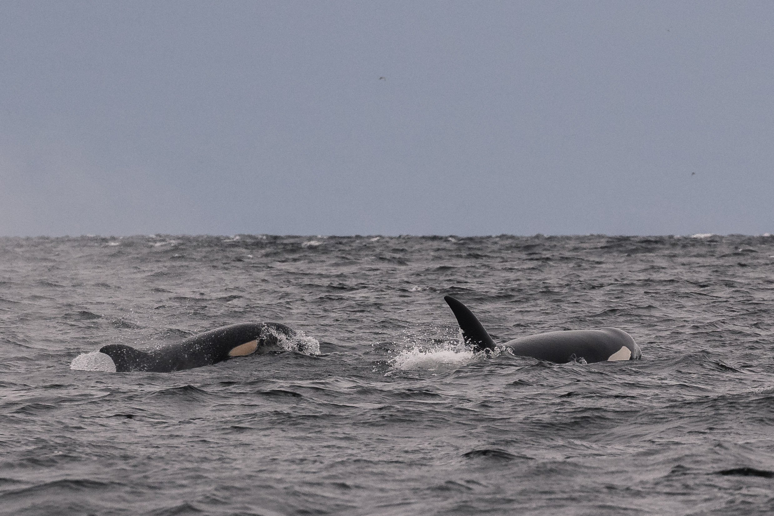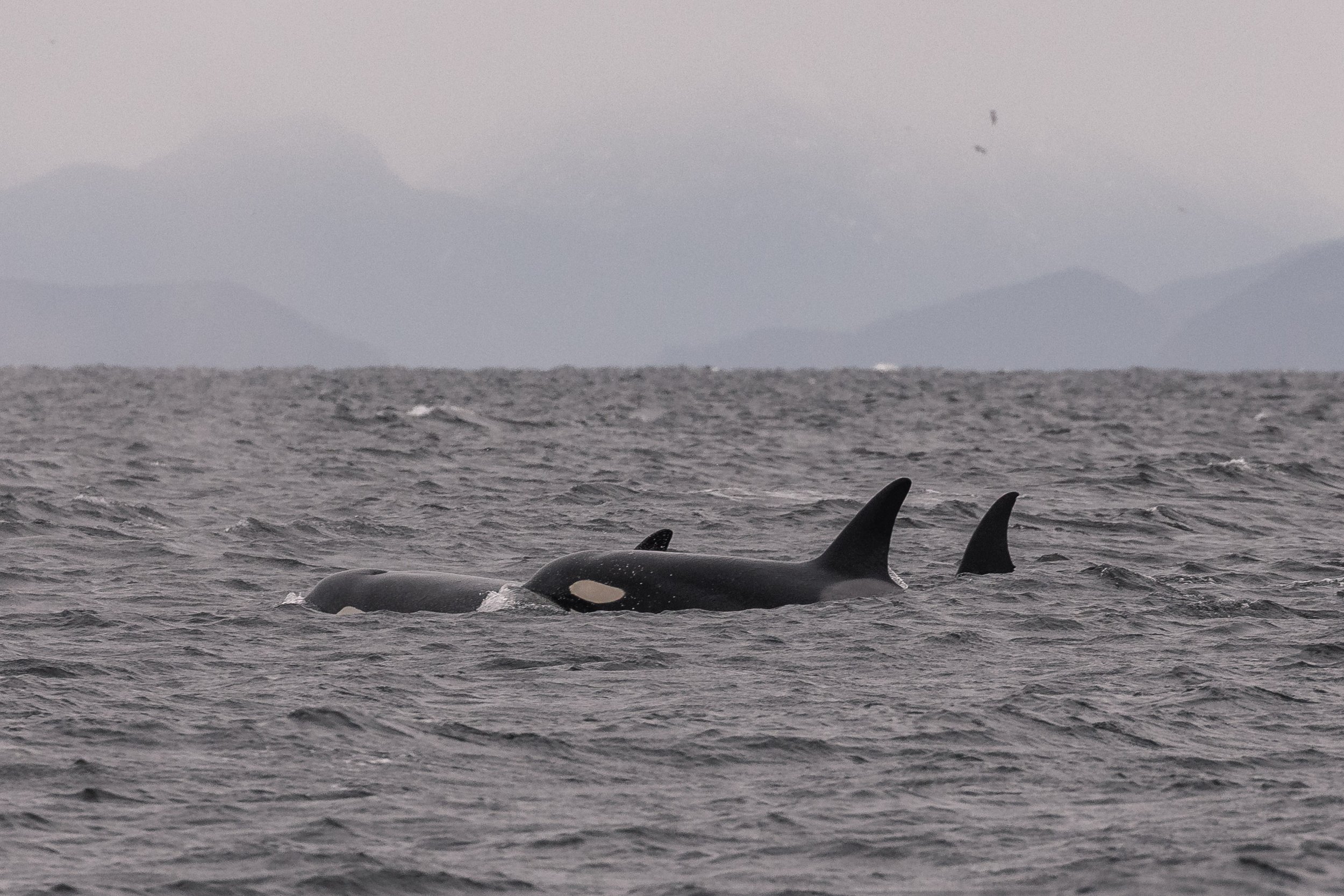 At one point, we observed what appeared to be prey sharing, a fascinating social behaviour among transient orcas. Even more remarkable was a behaviour often referred to as a “moonwalk,” where an orca swims backward with prey held in its mouth, allowing it to tear off smaller, more manageable pieces. It’s a rare and captivating glimpse into the complexity of their feeding strategies.