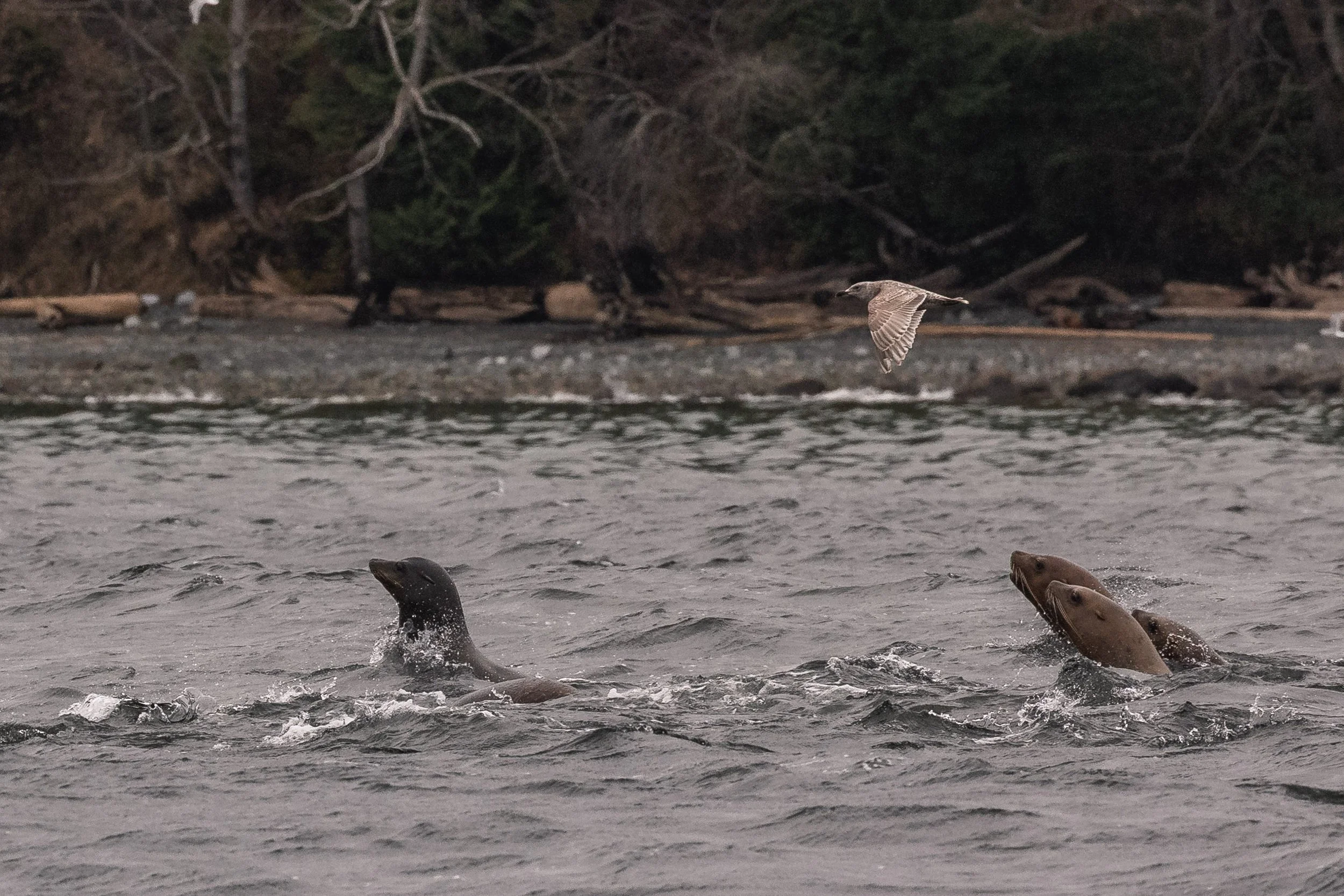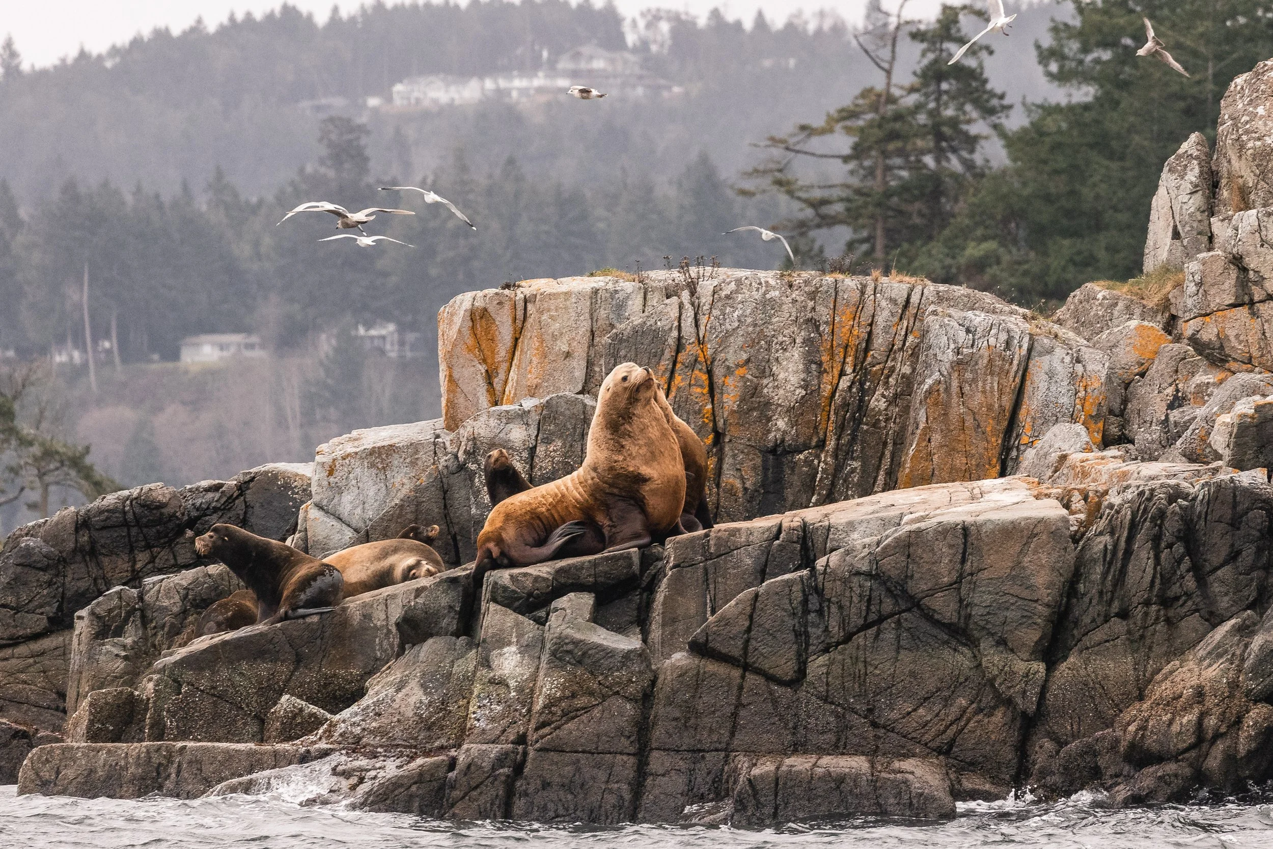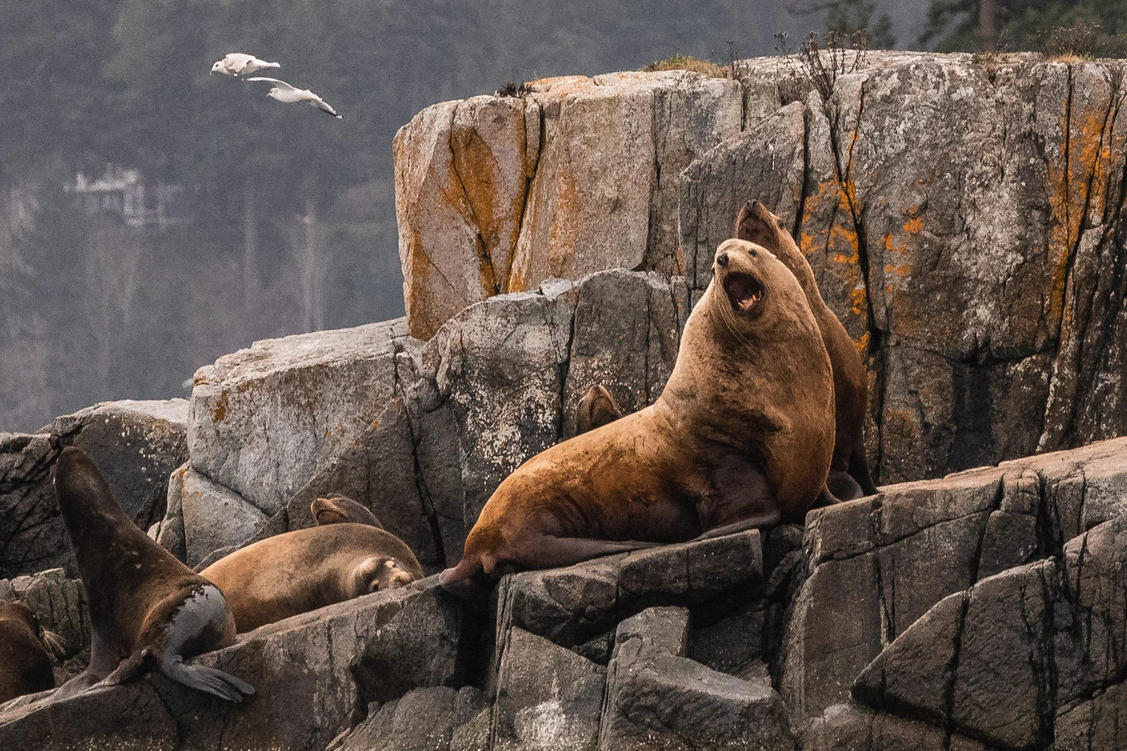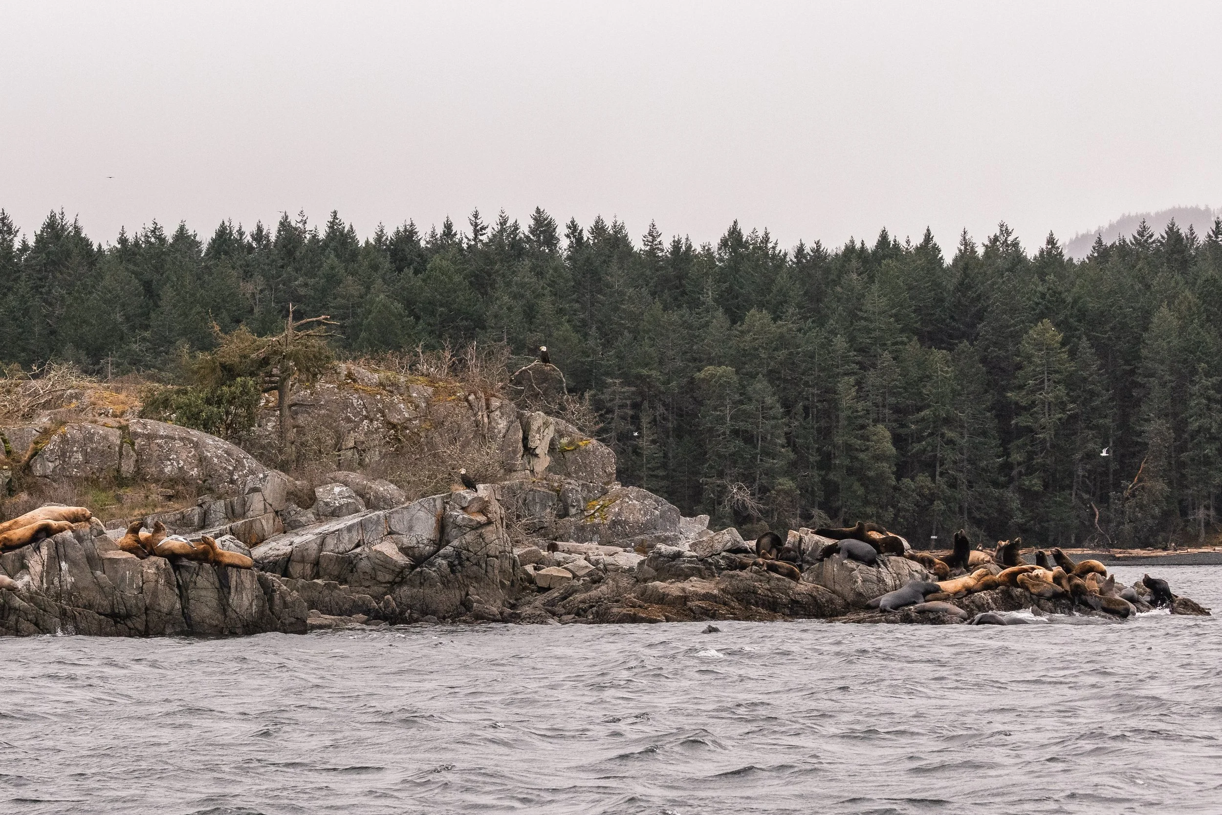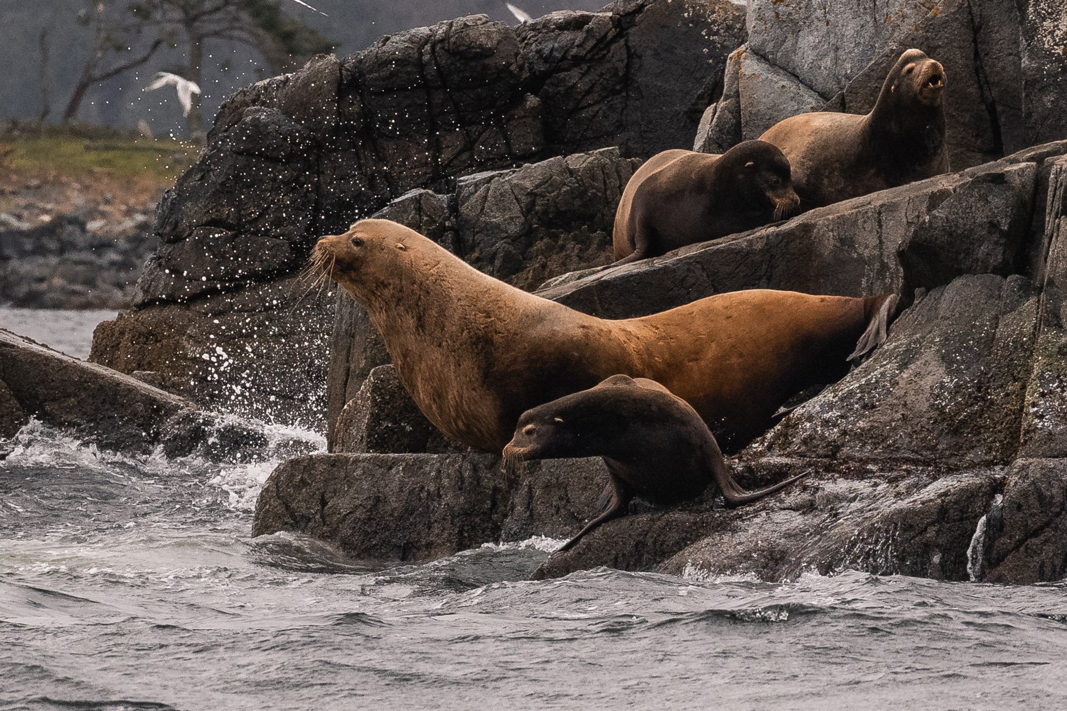 Before heading back, we made a few final stops along the shoreline, where yet another spectacle awaited. Rafts of sea lions crowded the rocks and waters, their numbers staggering. Vanessa noted it was the largest aggregation she had ever seen in this area, a testament once again to the richness of the herring spawn and its far-reaching impact.