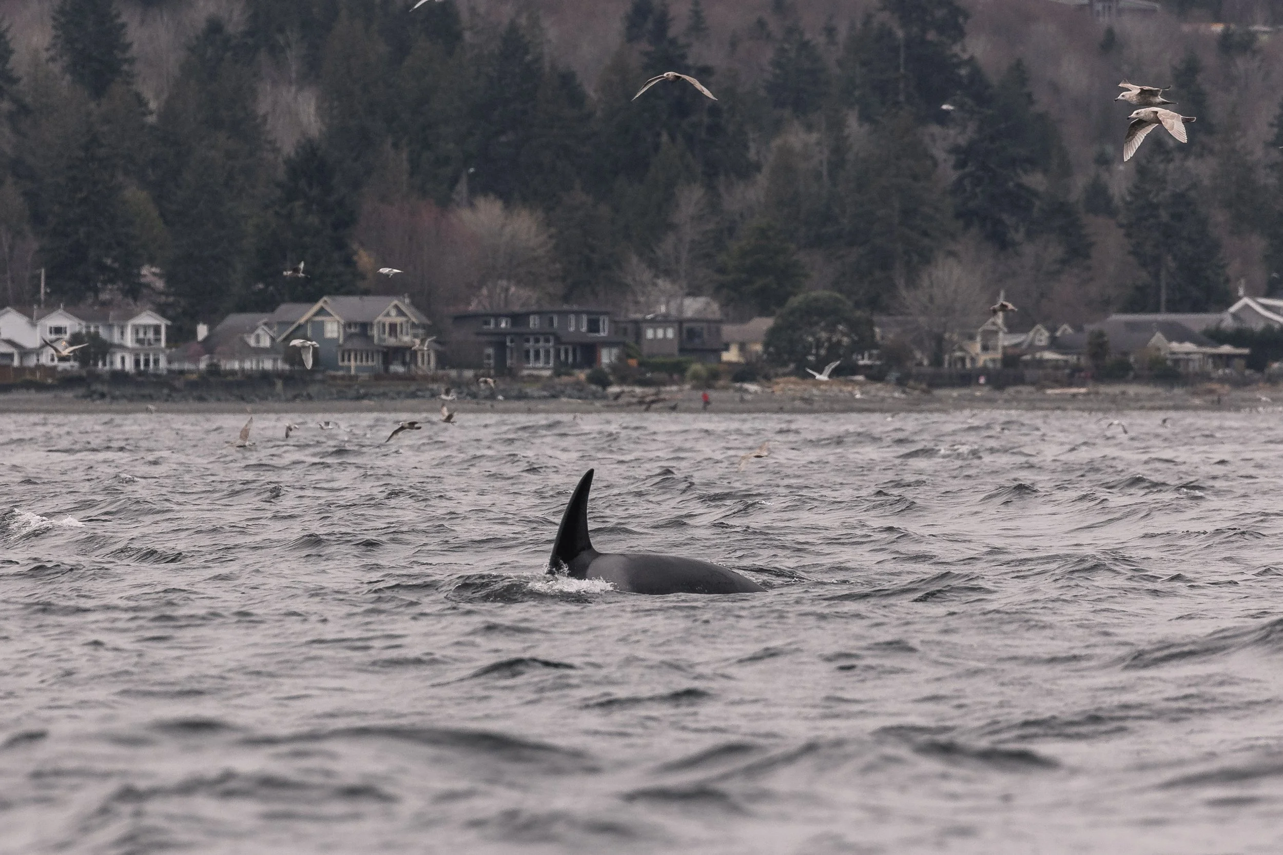 And then, cutting cleanly through the water, we saw it, the unmistakable black dorsal fin of a transient orca. The orca present at the buffet were: